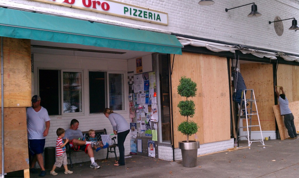 Photo by Tom Ratcliffe (Ad Executive) of businesses in Sag Harbor preparing for the storm.