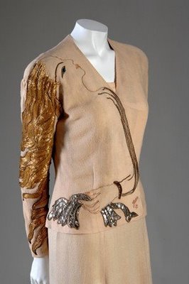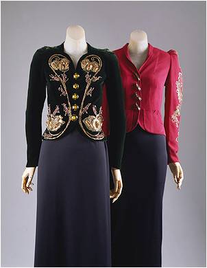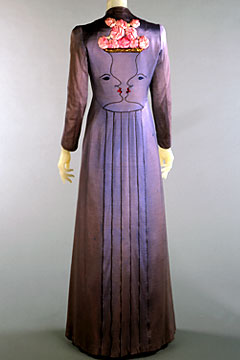 Starting with knitwear, her designs were heavily influenced by Surrealists like her collaborator Salvador Dali…things introduced to high fashion by Schiaparelli include: square shoulders combined with nipped-in waistlines, wacky prints, graphic patterned sweaters, jackets to wear with evening gowns, ready-to-wear boutiques for couturiers, sportswear mix-and-match separates, colored zippers, the wrap dress, the skort, and the wedge heel. Her legacy of spectacular designs with entirely innovative approach to fashion has greatly influenced contemporary fashion and inspired modern fashion designers, including Galliano, McQueen, Gaultier and Yves Saint Laurent.