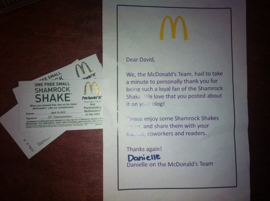 I’m a pretty big fan of the Shamrock Shake and McDonald’s in general, and last week I gave the new shake a try and wrote about it on this blog.