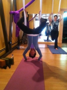 Imagine this; you enter a peaceful studio with beautiful silks, U-shaped “hammocks” hanging from the ceiling. Silk hammocks you can swing on, flip on and wrap your limbs around to take your typical yoga stretches up a notch. The silk wraps around you and supports you so you can achieve a deeper stretch with less exertion on your part. If you listen closely to your instructor you will flow through movements with elegance and ease. Aerial Yoga is equal parts challenging as it is relaxing. The hour fly’s by, as do you, literally!