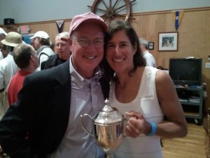 Even some 15 minutes after jumping up-and-down with such enthusiasm that his phone popped out of his pocket, Ryan was aglow. “I’m shocked. I’m ecstatic. Ultimately, I guess I got lucky. I sail any time I’m not working. Literally. I sail all winter long, I sail every Wednesday and Saturday and Sunday in the summertime. And this is special. It was a tough day out there. I was shivering at one point—it was cloudy, it was raining, I was in shorts. We came into the party and everybody said, ‘You did well.’ But I’ve heard the “you did well” thing before. And when it comes to the big trophy it’s Ooooohhhhh…you came in second. But not today.”