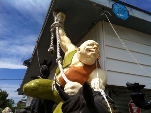 A T-Rex is still flashing teeth out front and slowing traffic, but he’ll soon give way to more topical displays—Halloween stuff (a cackling witch with flashing eyes is on standby inside the jammed 10,000-foot workroom), and red, white and blue elephants and donkeys will move outside as election season heats up—with requisite life-size Obamas and Romneys. One G.O.P pachyderm already left for Tampa.