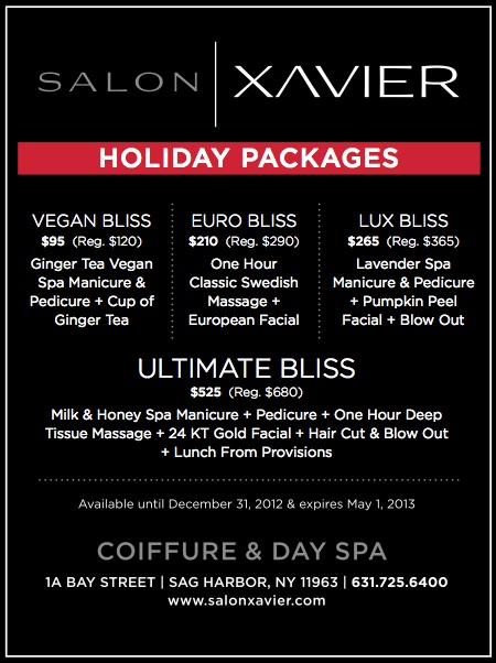 The most important part of skin care starts from the inside out and drinking lots of water, eating a healthy diet and getting proper sleep will help you look years younger, but what always makes me feel amazing is a great facial. Salon Xavier in Sag Harbor offers a 75-minute Signature Custom Facial that includes an exclusive Biologique Recherche serum from France that will leave your skin feeling years younger, Xavier’s Rejuvenating Oxygen facial and VIP 02 Oxygenating Treatment are two other fabulous facial treatments offered at the Salon. 1 A Bay Street, Sag Harbor. 631.725.6400 www.salonxavier.com.