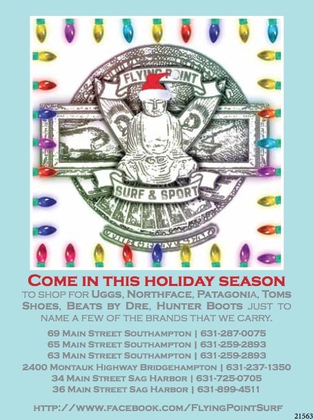 For the month of November, Lululemon offers Forrest Yoga with Milard Roper on Sundays, Core Fusion with Bridgehampton’s Rachel Feldman on Tuesdays, Surfer Yoga with Jimmy Minardi on Thursdays and Saturdays, and Open Level Vinyasa with Yoga Lila on Fridays. December events will be set soon—check out lululemon.com/easthampton for additional information on the programs and schedules.
