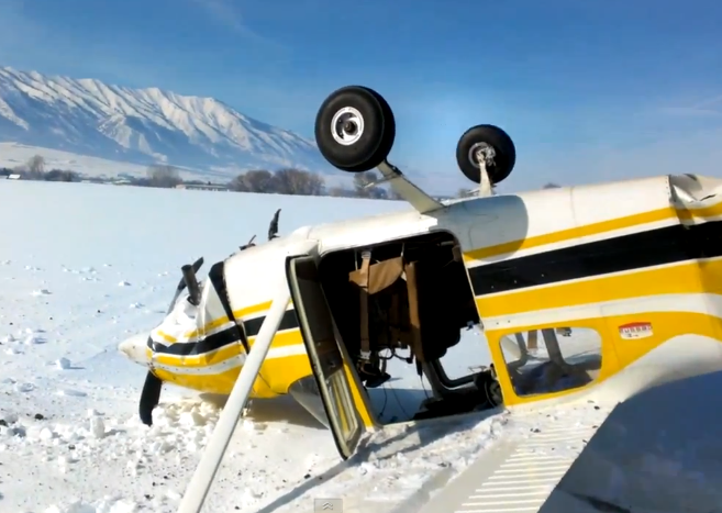 This guy films a plane crash in frigid Utah on February 2, 2013. He took his 7-month-old son, wife (her time ever flying) and mother in-law for a birthday flight when they received the shocking news that the plane‘s carburator had iced over. After gliding over some fields they found an ideal place to land. The pilot was experienced in field landings but unfortunately the snow caused the landing gear to sever from the plane, flipping the plane front to back and smashing the tail before it came to a rest upside down. No one was hurt in the accident save for bruises, whiplash and minor cuts.