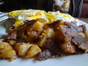 We also had to try another diner staple—sausage gravy over English muffins, topped with fried eggs. The sausage gravy was surprisingly sweet, from the onions I would imagine, and in order to fully appreciate this you have to get everything on one forkful and have at it. It’s a filling, manly-man dish. Did I mention the huge portions? These guys don’t mess around—they want you to leave completely full and satisfied.