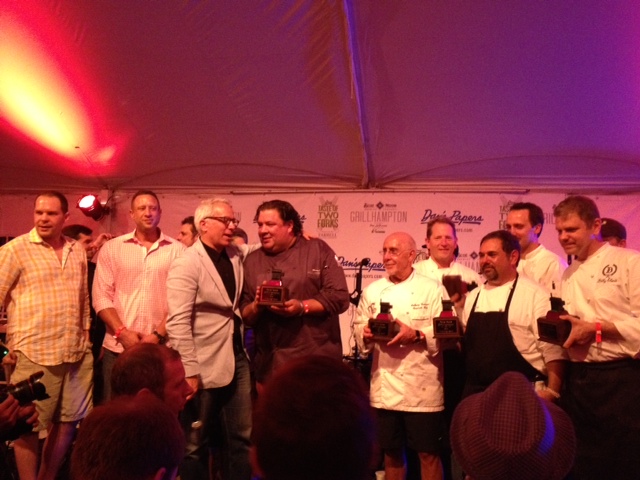 So what can I say about GrillHampton? Basically GrillHampton was a celebration of top chefs and their creations much like tonight’s event—Dan’s Taste of Two Forks, hosted by Bobby Flay—only instead of the guests spending the evening enjoying tastings from nearly every restaurant on the East End, a select group of restaurants from the East End and NYC had chefs at the grill, competing against one another for the guests and a panel of celebrity judges. Then, at the end of the night, diners voted on who’s food was their favorite, and the winner was announced. Last night Rumba of Hampton Bays won the People’s Choice Award, and it was announced that Team Hamptons beat out Team New York City.