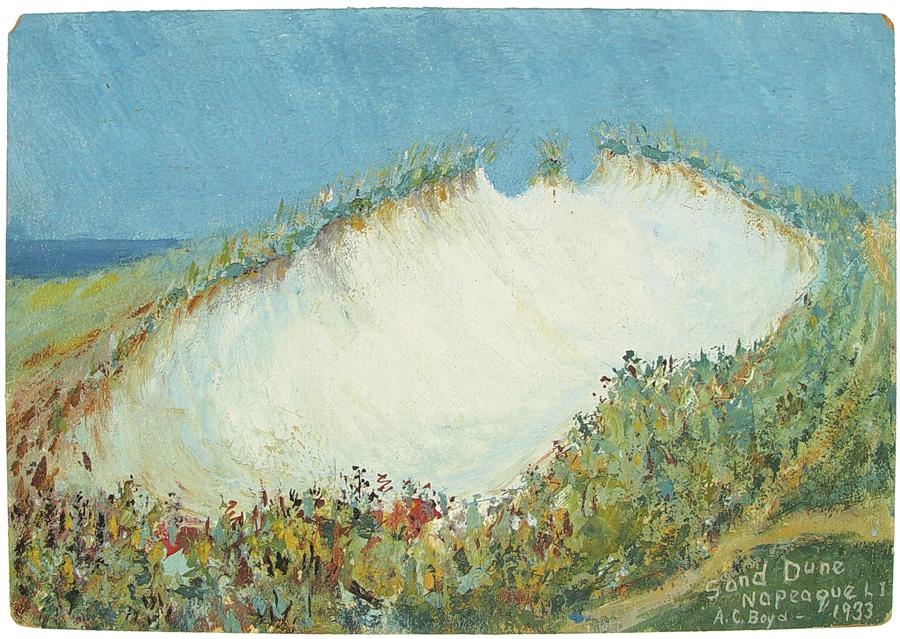 Annie Cooper Boyd painted this Napeague dune in 1933. It is one of two paintings of the same scene, which are exhibited side by side at the Sag Harbor Historical Society for the viewer to note note the subtle differences. A trip to Napeague today will show that little has changed in this pristine location over the past eighty years.