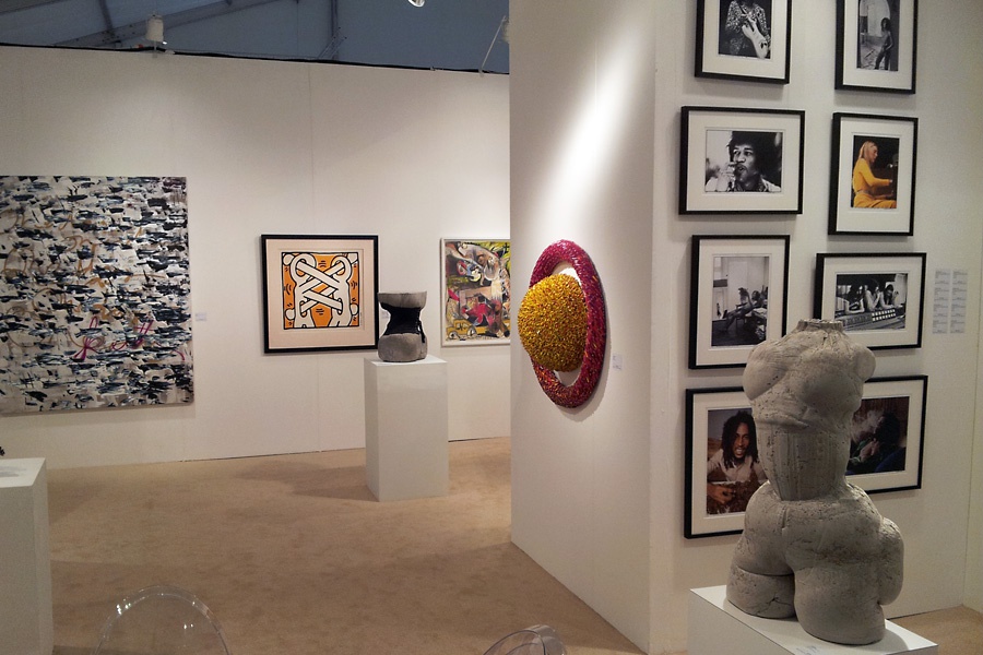 Some VIPs seized the opportunity to snatch up coveted works. Multinational Consultores de Arte S.A. sent a loyal attendee of Art Miami’s multiple fairs home with a Botero sculpture for $400,000. Some New York galleries seemed to have a home court advantage in the first round of play: The uptown Abby M. Taylor placed Sidney Gordin’s museum-quality iron sculpture Curved Rods for around $50,000, and a trio of two-dimensional compositions by Caio Fonseca for a comparable combined price. Chelsea-based Taglialatella Galleries (which also has branches in Palm Beach and Paris) sold a bold Keith Haring work for $31,000. SoHo stalwart Westwood Gallery parted with several sculptures and a collage by Winston Churchill’s granddaughter Edwina Sandys.