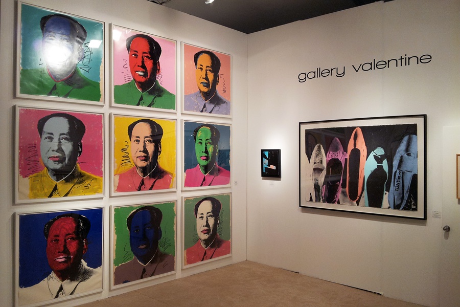 Works by, and of, the enigmatic master of appropriation could be found throughout the fair. Galerie Hafenrichter from Nuremberg and Galerie Eikelmann from Dusseldorf, who shared a booth, sold one of his iconic Jackie Kennedy silkscreens for $19,500 and a Jeff Koons balloon dog for $15,000.