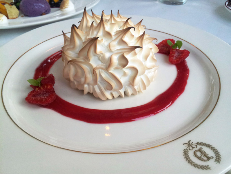 At this point, anything short of a sweet finish is not an option. A carnival of blueberry ice cream, brown butter cake, meringue and macerated peaches is colorful and cool, while the decadent chocolate tart with peanut butter ice cream ends an argument as to whether pairing PB and cocoa is divinely inspired. And what would dessert be without Baked Alaska? After all, Delmonico’s gave the French classic its name back in the 1860s after the U.S. purchased the Alaska territory. A forkful is like biting into a cloud, if said cloud is an ethereal lemony-raspberry wisp.
