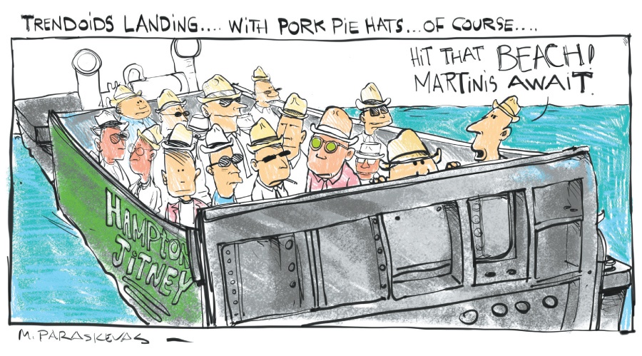 “If they try this again next Friday,” Chief Ketchum said, waggling an index finger, “they will be in for a big surprise. We are organizing 12-man police SWAT teams to sit and wait in ambush every Friday at the back of every beach in the Hamptons. They may try to repeat these landings. But an amphibious assault can be driven off, and we will do exactly that, or, if they do break through, we will put into play our roadblock units to ticket the arriving motorist perps on the spot.”