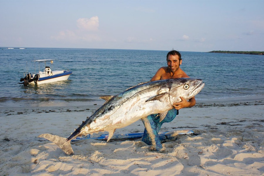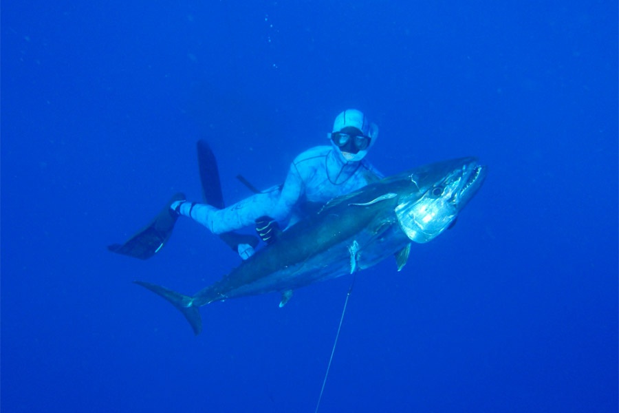 Also called “extreme spearfishing” or blue water hunting, the sport is defined by diving without air tanks and hunting pelagic fish in open, or “blue,” water—sometimes as deep as 100 feet below the surface. To understand more about this sport, and Dash Marder’s prowess at it, read the linked blog by Eric Allard of Open Water Extreme Adventures Ltd. (OWEA), recalling his 2011 trip to hunt dogtooth tuna with Dash off Latham Island in Tanzania, Africa at extremebluewaterspearfishing.com.
