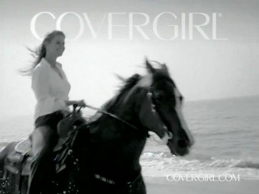 On Facebook, Brinkley noted, “Goodbar did everything with me she even came to work for Cover Girl with me!” and shared a shot of her and the horse in a Cover Girl ad. Another post included another older photo of Brinkley and Goodbar Miss (see at top of page), reading only, “Happy Days with Goodbar Miss.”