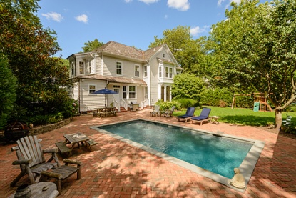 This three-story Federal in the heart of the village has 4 bedrooms and 3.5 bathrooms. On 0.23 acres, the home is 3,100 square feet and has been restored. Featured include wide plank pine floors edged with nautical rope, floor to ceiling arched windows, four period gas fireplaces and intricate woodwork.