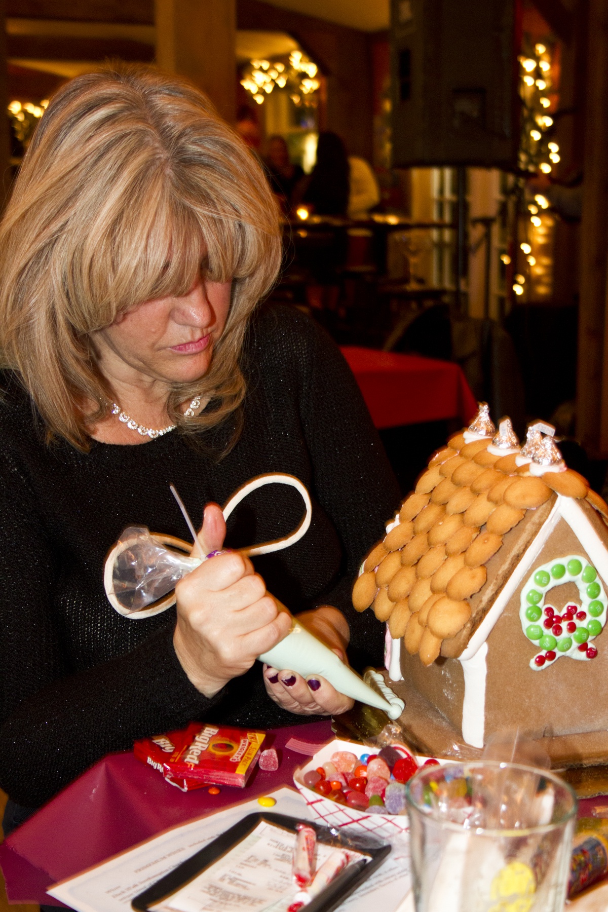 “Gingerbread Fred” Terry hosted his Gingerbread University: Gingerbread and Wine decorating class at the North Fork Tasting Room in Baiting Hollow Friday. Guests enjoyed wine and cheese while learning the fine art of decorating their holiday gingerbread houses.