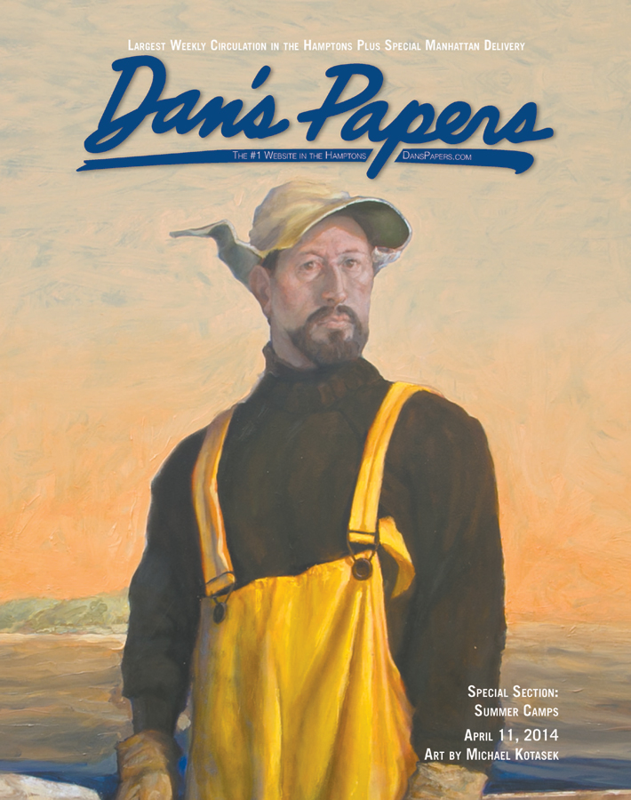 This week’s cover, “The Lobsterman” by P. Michael Kotasek, celebrates our local heritage and the hard-working men who have farmed the sea’s bounty for generations. The large oil is expressive and moody, with an eerie, peach-colored light.