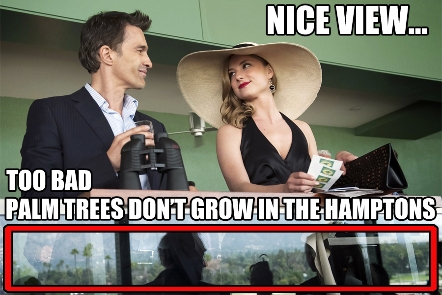 It’s a day at the horse races in the Hamptons (except there is no horse racing in the Hamptons). Pascal and Emily have a clandestine meeting in the middle of the crowd, where Ems tells Pascal she knows he’s playing her. She calls Aiden, who is trying to sneak into an unspecified, LeMarchal-owned corporate building to find information on Oscar Chapman, the journalist who may have information on Aiden’s pop, Trevor.