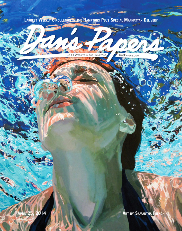 This week’s cover captures something vivid in our memories but hard to capture in paint—the intensity of the light as seen from below the swimming pool’s surface and the refreshing feeling of having just dove in on a hot summer’s day. Artist Samantha French lets us in on what’s behind this painting—her background, inspirations and upcoming projects.