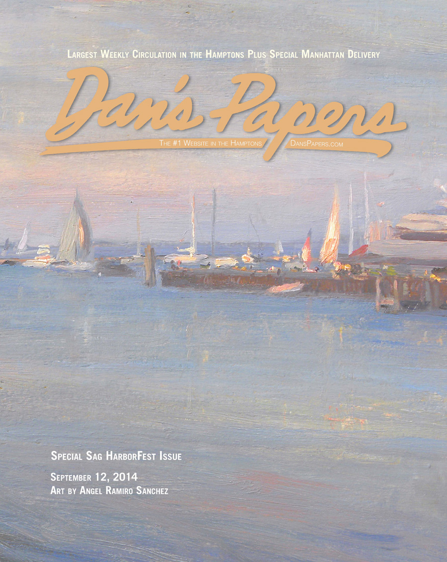 Bathed is soft light, the expansiveness of the sea and sky in the painting on this week’s cover is felt like a gentle breeze. Titled “July Evening, Sag Harbor,” the impressionistic oil painting captures a distinctive scene overlooking the bay from the west side of Long Wharf. Painted in 2013 by Ramiro Sanchez, née Angel Ramiro, “July Evening, Sag Harbor” could have been made yesterday or two centuries ago (well, minus the yacht in the background). Currently with his family in Florence, Italy, Sanchez talks about his connection with the East End, his background as an artist and where we can see his work next.