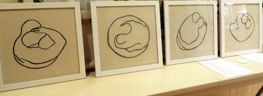 Gina Gilmour’s brilliantly abstract paintings adorned the back wall of the Academy. “The colors, the paints, tell you what to do next. It’s unconscious and visual,”Gilmour said, describing her process. Her splashes of colors evoke a sense of fun and humor. One cannot help but be instantly uplifted by Gilmour’s work. Her bright reds and yellows have the power to cut through even the gloomiest of days, but Gilmour’s style is not limited to vibrant abstracts. One display featured four framed charcoal drawings, each representing nondescript figures embracing. The gender is left to one’s imagination, allowing the mind freedom to drift into a multitude of scenarios. These works greatly contrast Gilmour’s vibrant abstracts, but they remain animated, lively and exciting.