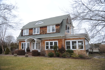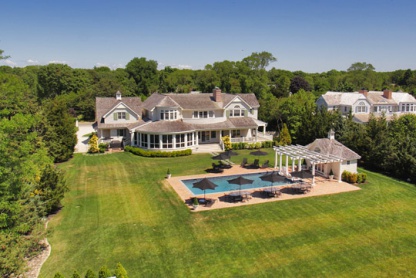 This 7,072-square-foot 2-story shingled Postmodern on 1.2 acres has a 1st floor with a cathedral ceiling foyer; open living room with coffered ceiling and fireplace; a gourmet eat-in kitchen with granite counters, backsplash and high end stainless steel appliances; a dining room, a den with fireplace; and a powder room. A private guest wing has its own access on the 2nd floor. The master bedroom, on the 2nd floor, has a balcony, fireplace, sitting area, his & her closets and bath with jacuzzi. Amenities include a heated gunite swimming pool with brick patio, pool house with full bath, refrigerator and sink, large rear yard and bocce court, screened porch with mahogany decks, central air conditioning and 3-car attached garage.
