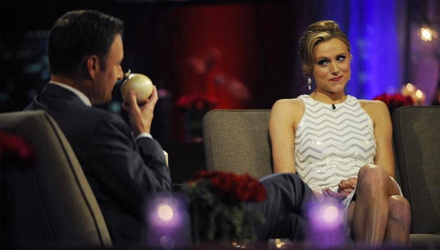 Ashley S. looks around the studio and says, “It’s so weird…just that we’re on TV.” Is she putting all of us on? Is this girl an actress trying to make the most of her 15 minutes of fame? If so, she’s succeeded. Chris Harrison invites her to join the cast of Bachelor in Paradise, the summer show from the producers of The Bachelor. You go, girl! Your nuttiness got you more TV time. I don’t think you’re as dimwitted as you let on.