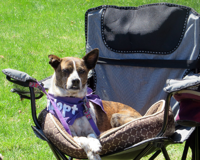 Today started like most Saturdays since I was rescued by Last Chance Animal Rescue. My foster mommy, my foster brother and my foster sister took me to an adoption event. This time it was at the Comsewogue Library. It was a bright, sunny day with a constant breeze that made my ears flap. My foster mommy, Dawn, set up folding chairs and put my dog bed on one. I was very content, lounging around and getting kisses from the volunteers.