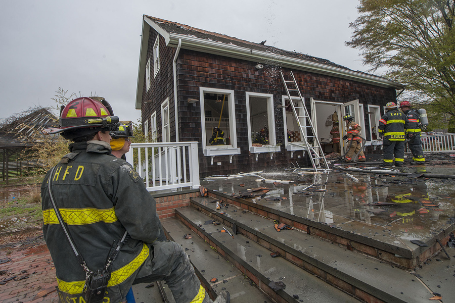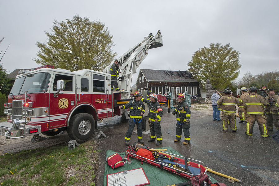 Members of the Southampton, North Sea, Hampton Bays, Bridgehampton, Sag Harbor and East Hampton fire departments fought a fire in a vacant building at 337 Montauk Highway in Water Mill on Saturday, May 9. See the photos of firefighters soaking down the roof and interior.