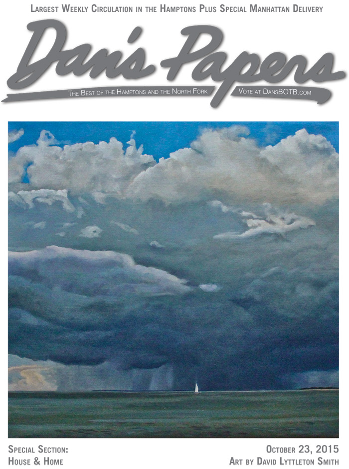 It’s all about the elements. I like to do similar scenes and play with different compositions of sky and sea. Here, I have four horizontal sections, elsewhere three or two. This painting, by the way, was in a show, “Views from Accabonac,” at Ashawagh Hall [in Springs] and sold even before the official opening.