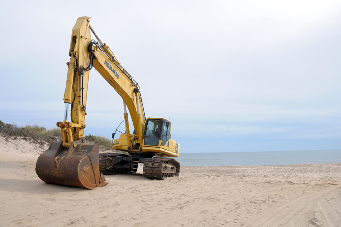 The work, at a cost of nearly $9 million, will be completed in about 80 days. At that time, an enormous chain of sandbags, each weighing a ton and a half, will create a wall on the beach. It will be deep down into the bedrock, 10 feet down below sea level. It will rise up to where the dunes used to be, directly in front of where the buildings downtown face out to sea, some of them looking dangerously out atop the remains of what was once a protective dune but is no more. Now the dunes will be back, the sandbags covered with between 3 and 10 feet of sand. You will never see the sandbags—unless we have a storm of the century as we had in 2012. Then some of them might have to be re-covered. But they will have saved the town. Done their job.