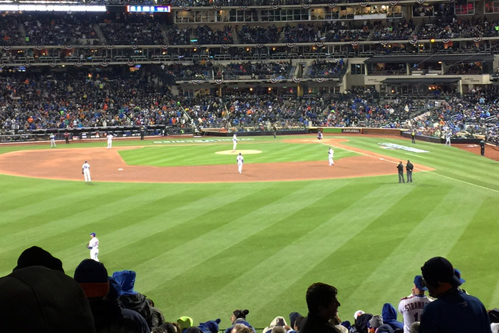 My brother and I made friends with the people who shared our standing-room-only section. Mets fans are good people, and a group of five of us alternated between enjoying three front-row seats and saving spots when someone had to run to the bathroom or grab a hot dog.