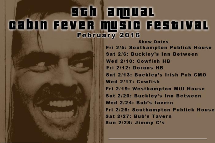 The Cabin Fever Music Festival will showcase a diverse roster of bands from February 5 to February 28 at venues from Center Moriches to Southampton Village.
