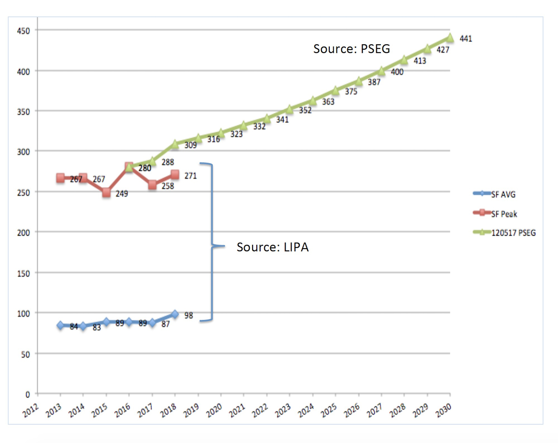 Peak demand periods are important because the Long Island Power Authority and PSEG — Long Island, which manages the grid for it, are required to be able to provide enough power to meet those peak demands, which typically occur on hot, summer afternoons when air conditioners and pool pumps are being used heavily. To be able to meet the demands during those periods, PSEG runs a number of small, “peaker” generators that typically rely on fossil fuels to operate. LIPA has also sought to beef up its transmission lines to meet a projected future demand that may no longer be there, some critics say.