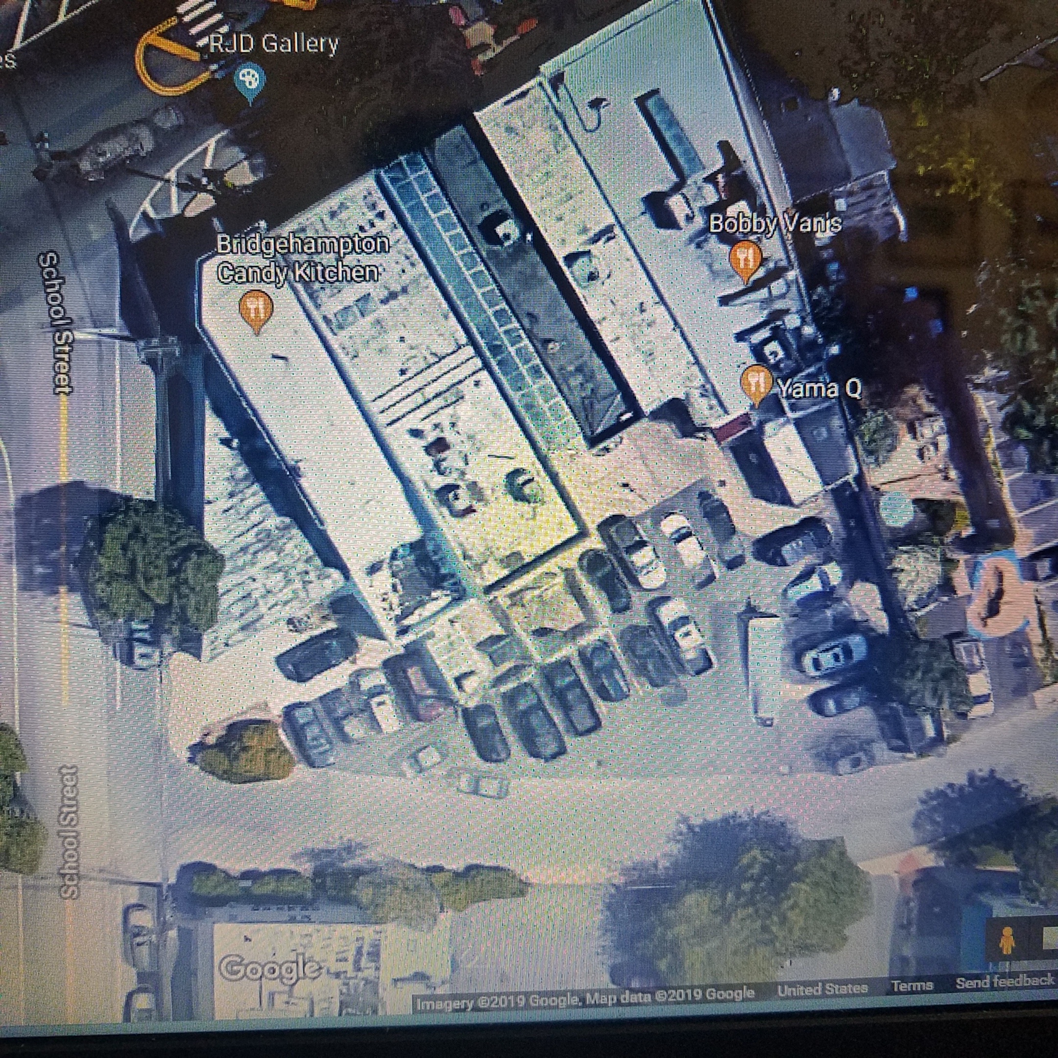 In the front, on Main Street, a security camera next door to the Candy Kitchen captured mostly vehicular traffic north of the stores; around 4:30 AM or shortly later, a tall black male wearing athletic gear and sneakers walked across Main Street, north to south, in front of the Candy Kitchen and out of the picture.