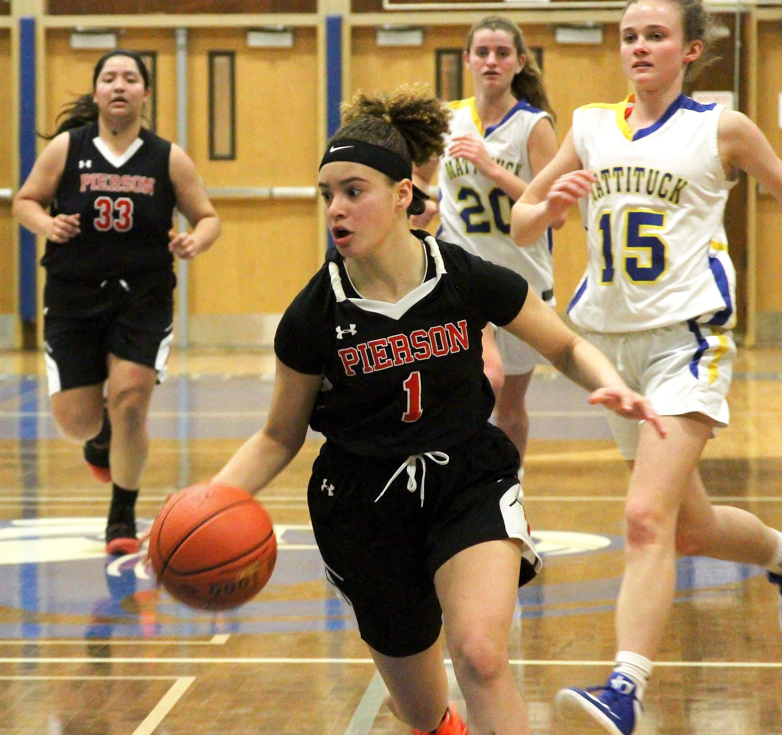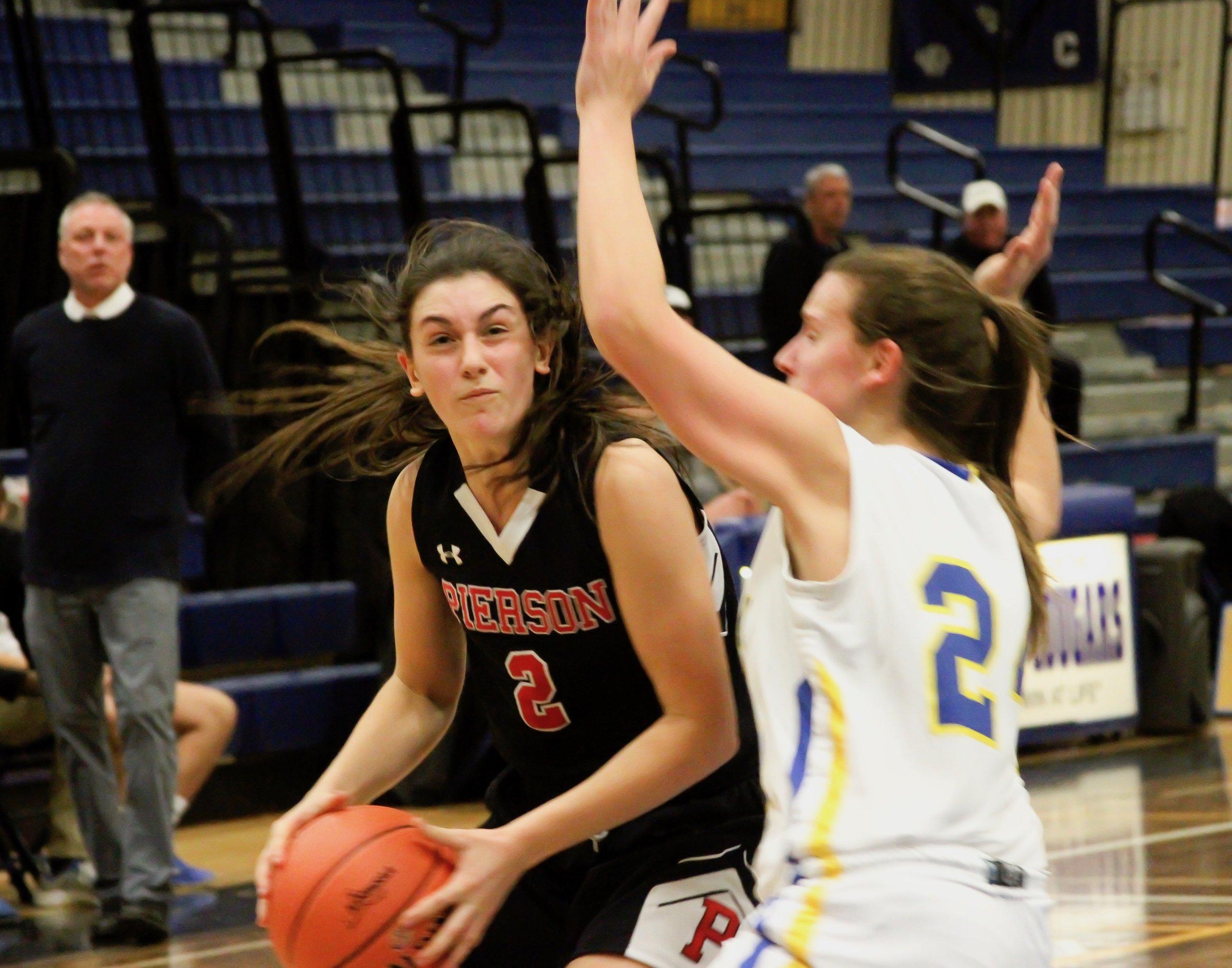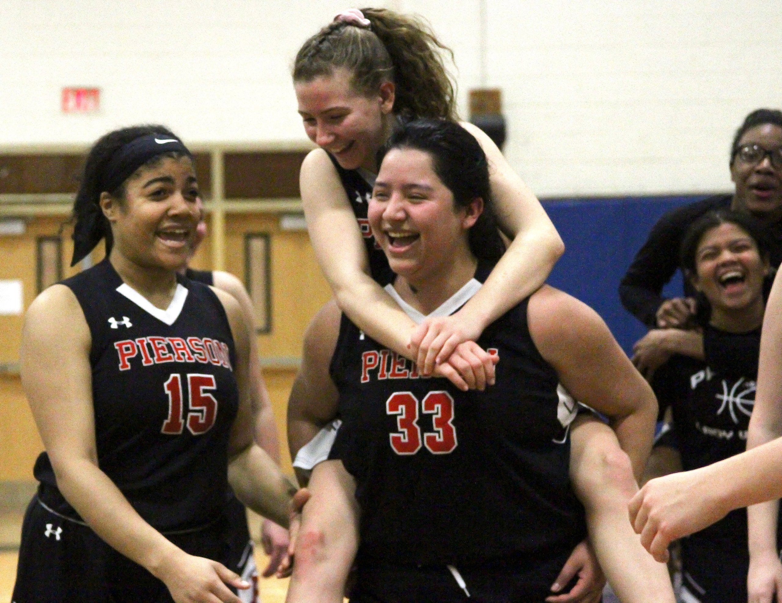 With the score tied heading into the fourth quarter, the Pierson junior point guard knocked down a free throw and hit a 3-pointer off a Celia Barranco forced turnover to break a 39-all tie and give the Whalers the lead for good. After a Sarah Santacroce field goal, Giles and senior forward Katie Kneeland made back-to-back buckets for a 46-41 Pierson victory February 20 to send the Whalers to the small school championship. The team will face Mt. Sinai at Walt Whitman High School Friday, February 22, at 4:30 PM.