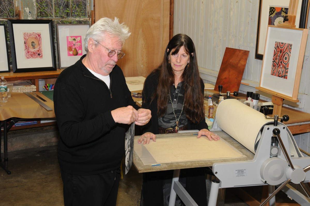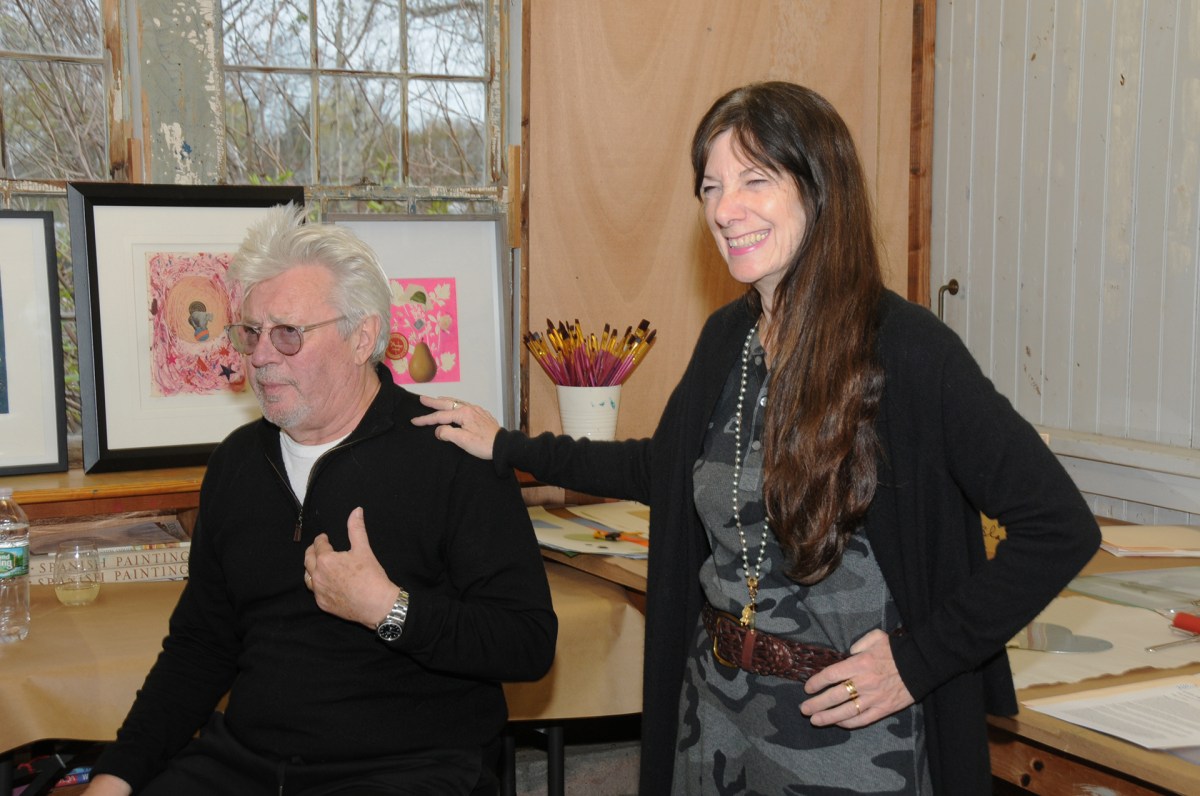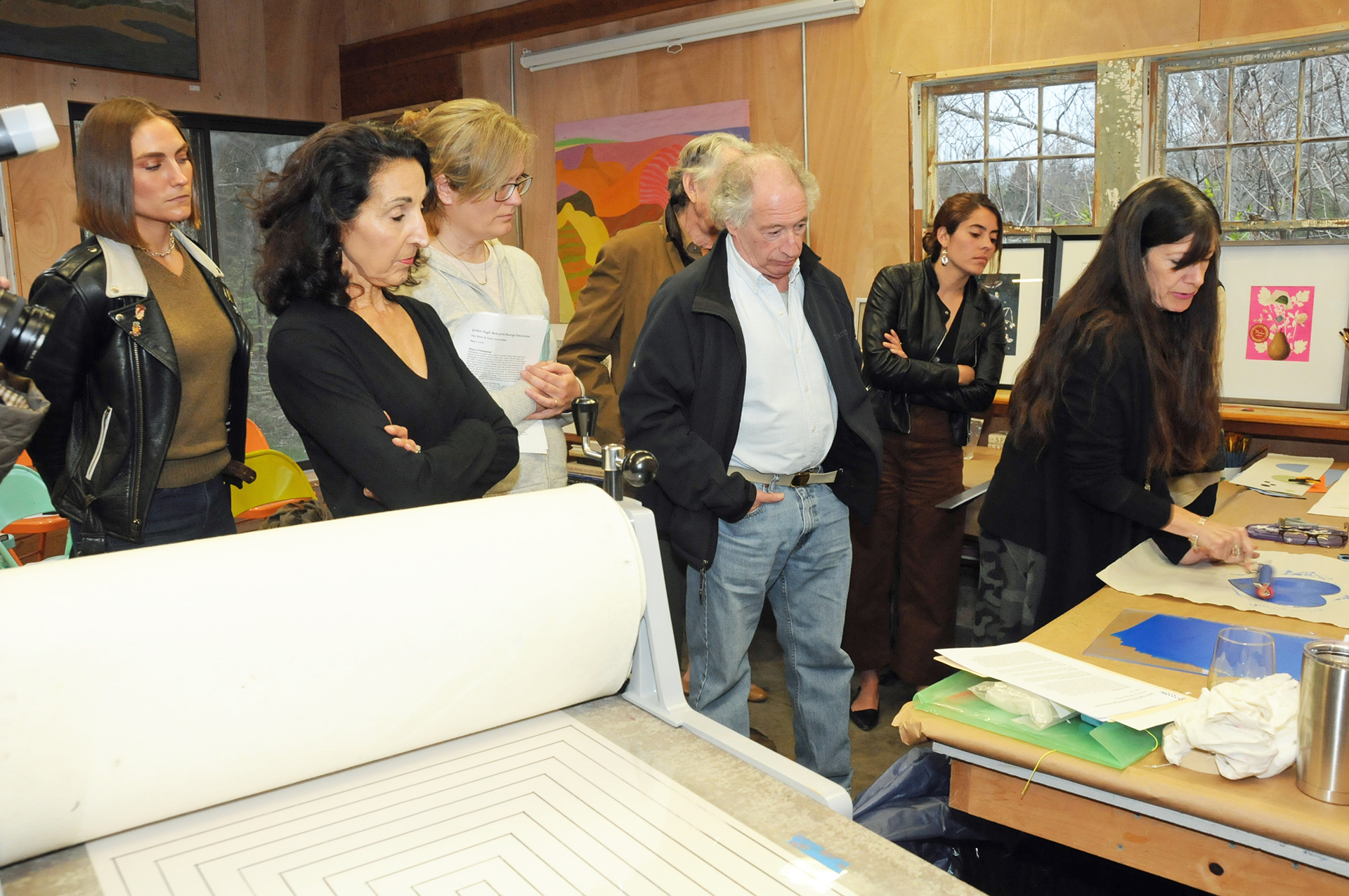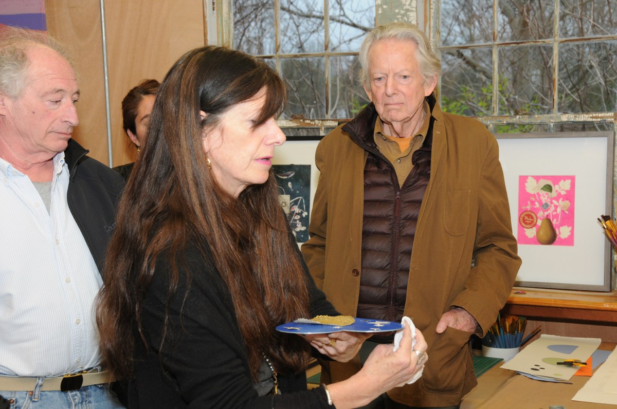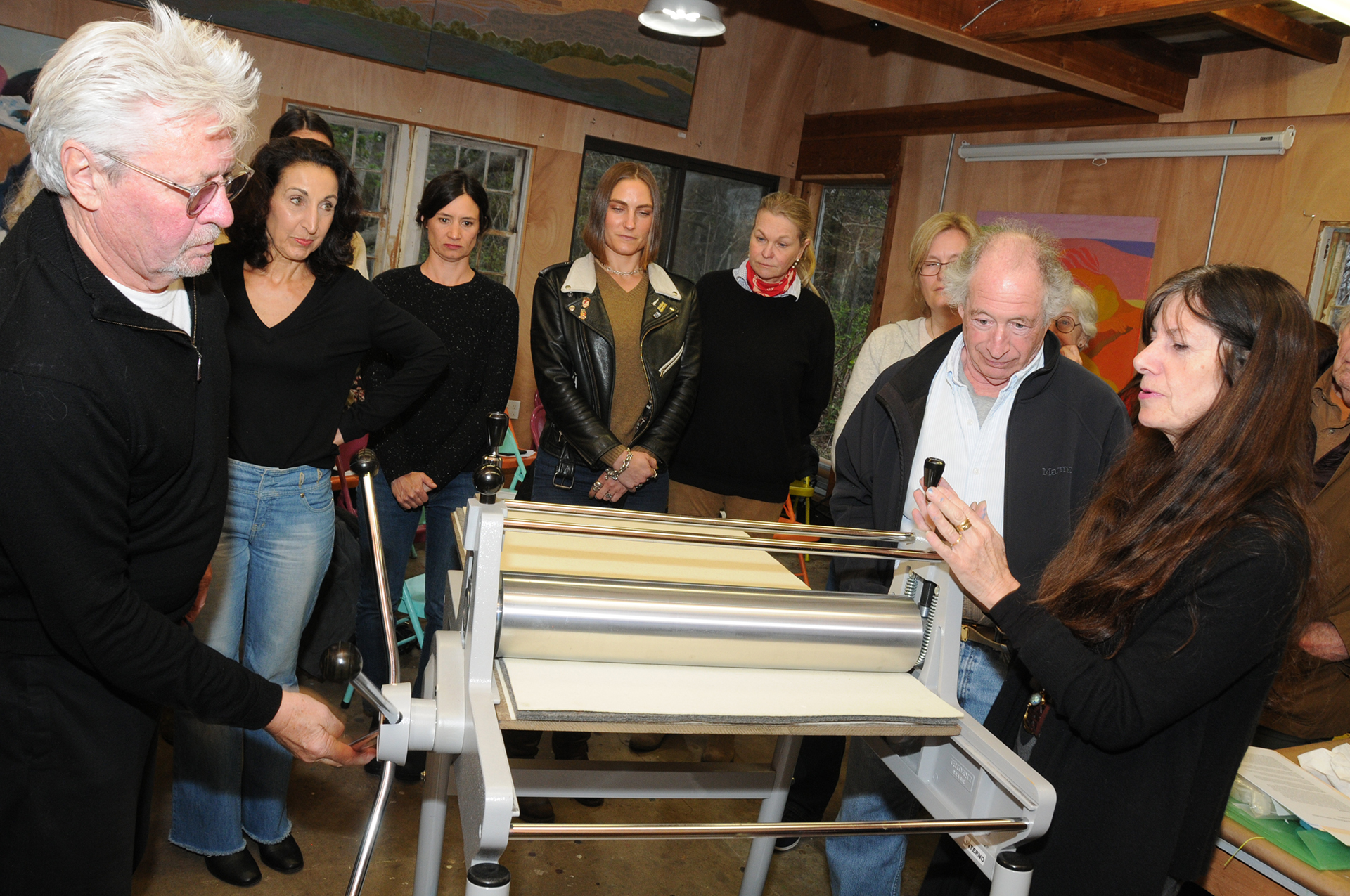 If you wanted to learn the difference between a mono-print and a monotype, and anything there is to know about printmaking, Golden Eagle in East Hampton was the place to be Wednesday, May 1, as artists Dan Rizzie and Susan Lazarus-Reiman explained and demonstrated a variety of techniques and materials. Dinner followed next door at Nick & Toni’s Restaurant, part of the “A Night Out With . . .” series.