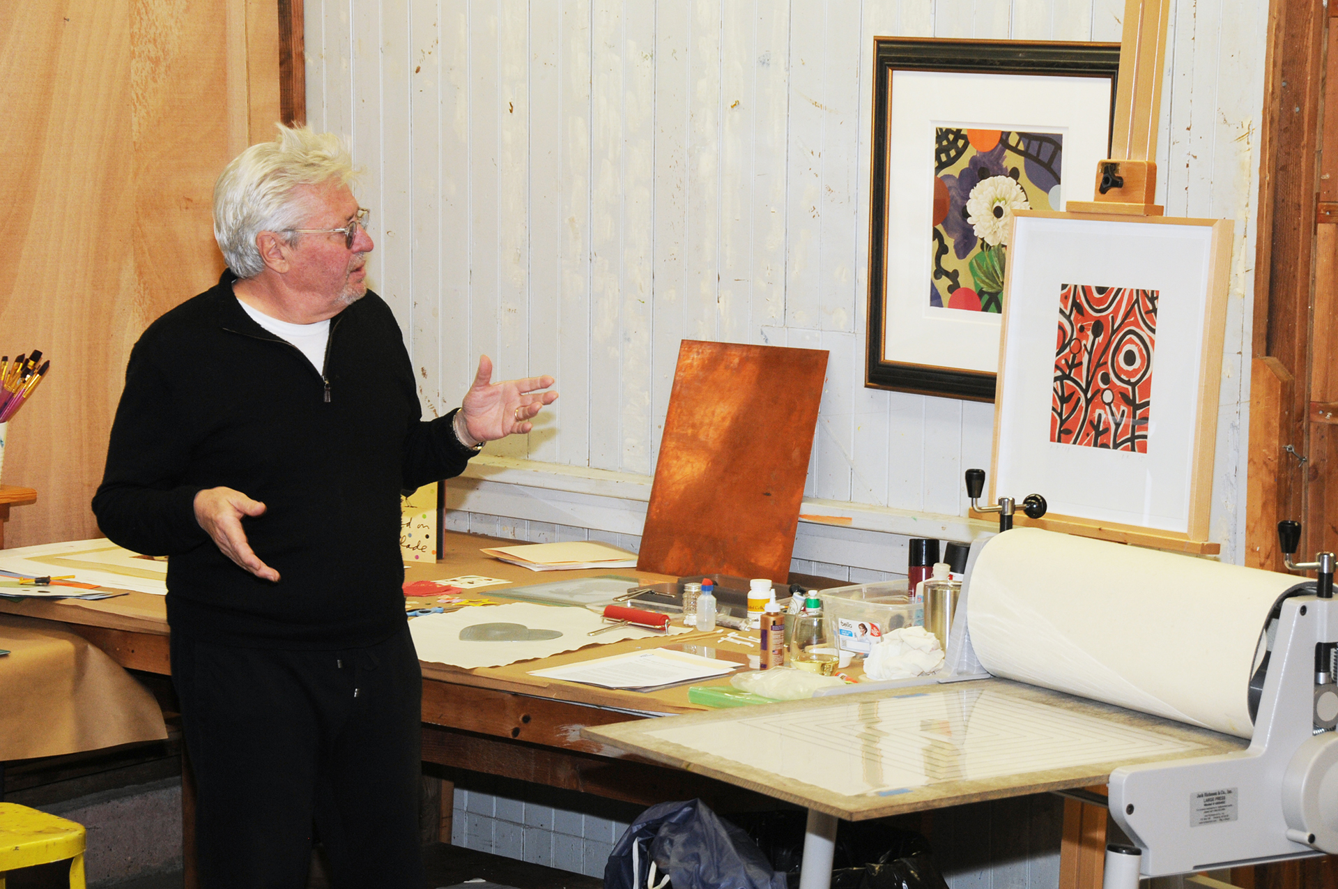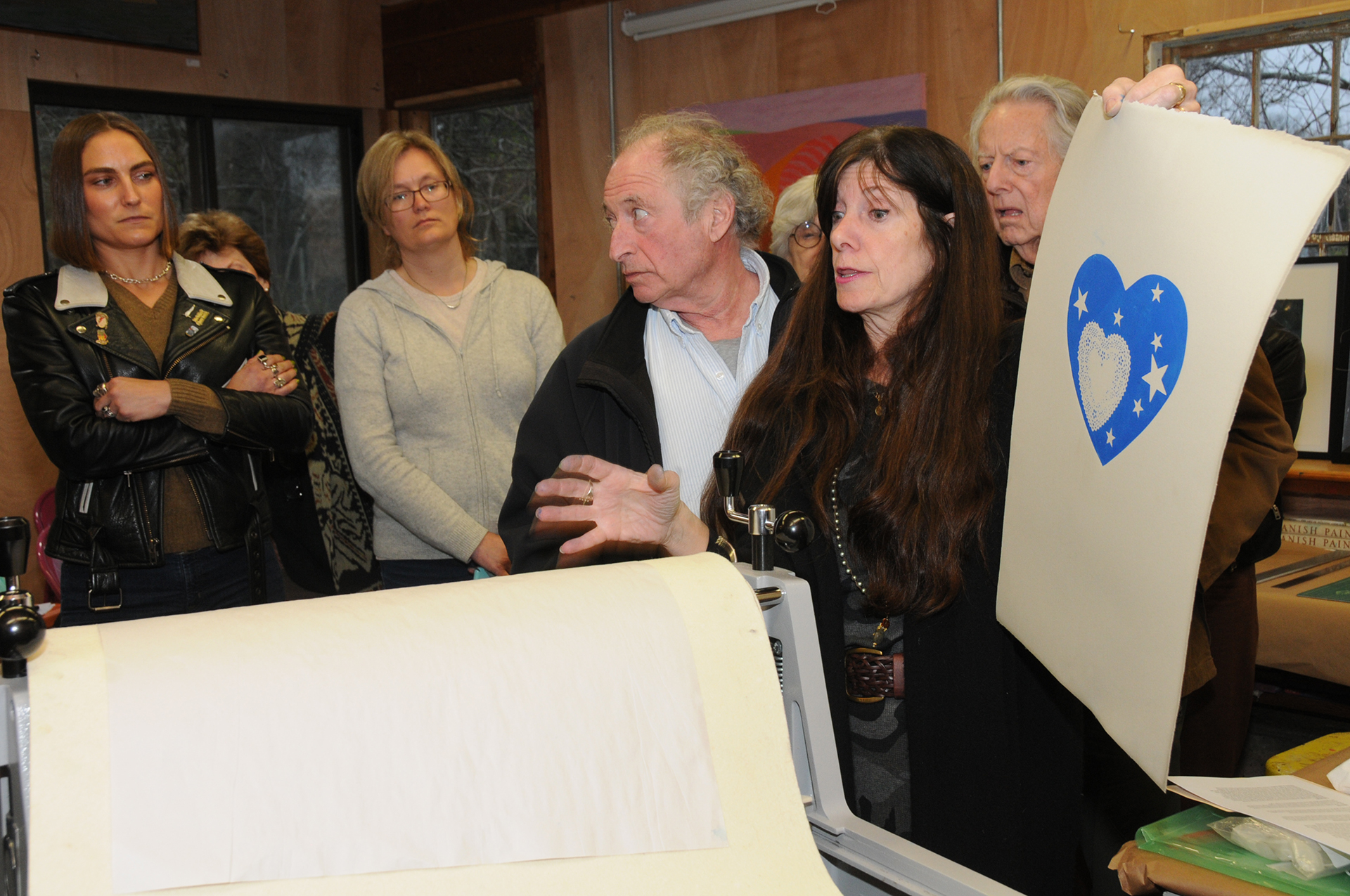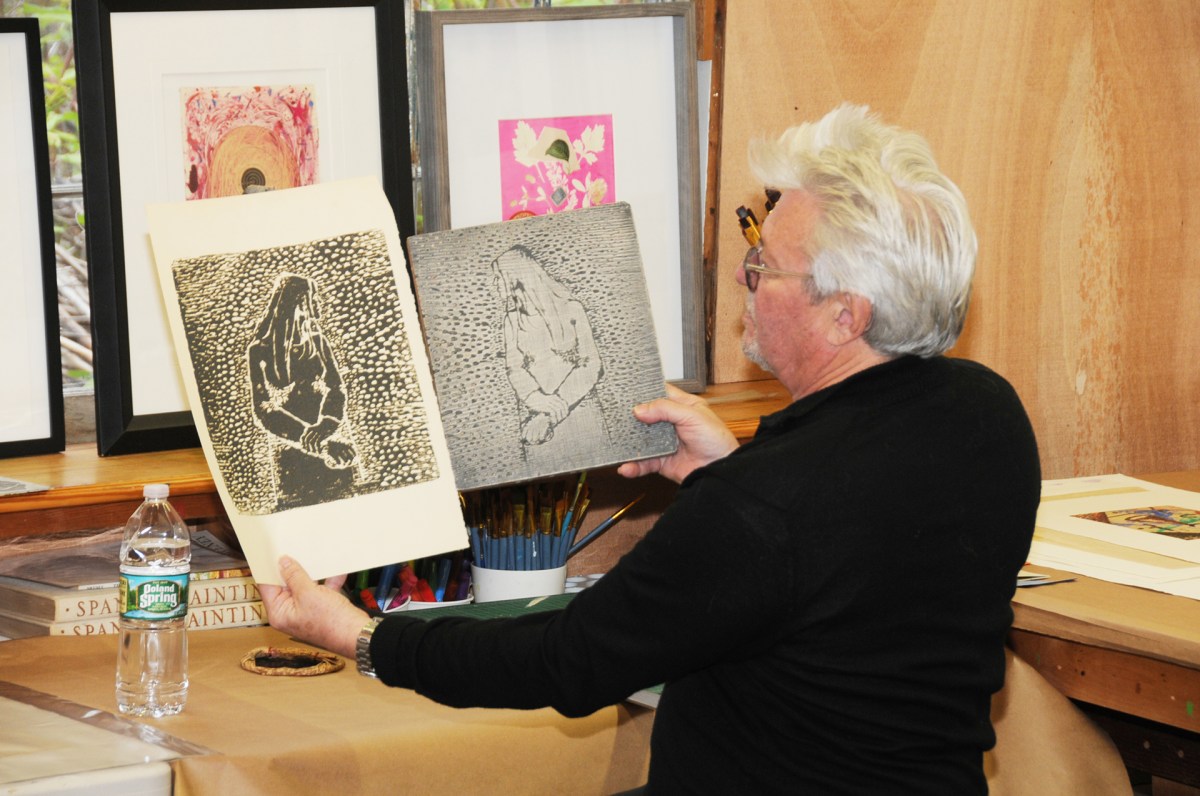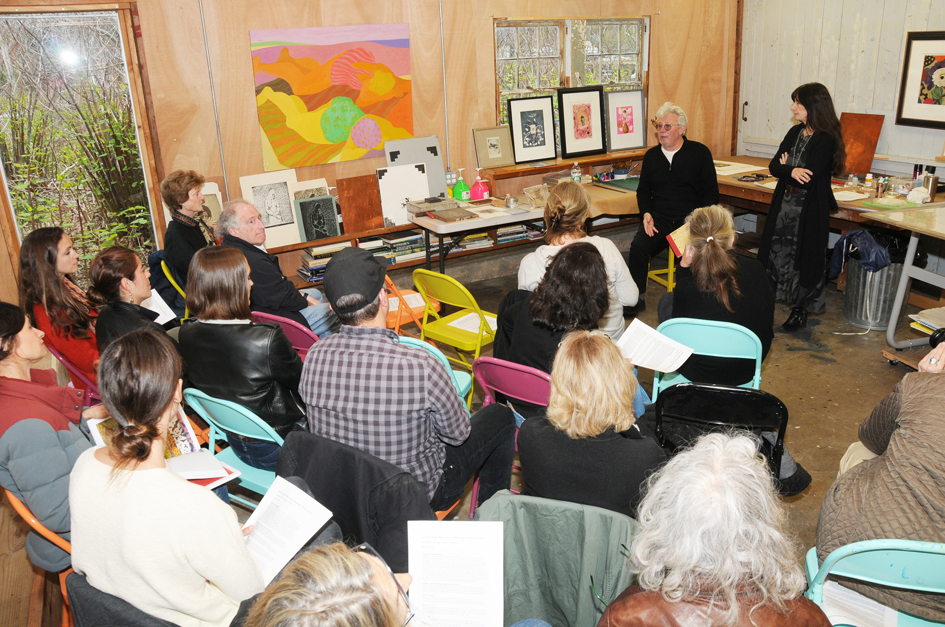 If you wanted to learn the difference between a mono-print and a monotype, and anything there is to know about printmaking, Golden Eagle in East Hampton was the place to be Wednesday, May 1, as artists Dan Rizzie and Susan Lazarus-Reiman explained and demonstrated a variety of techniques and materials. Dinner followed next door at Nick & Toni’s Restaurant, part of the “A Night Out With . . .” series.