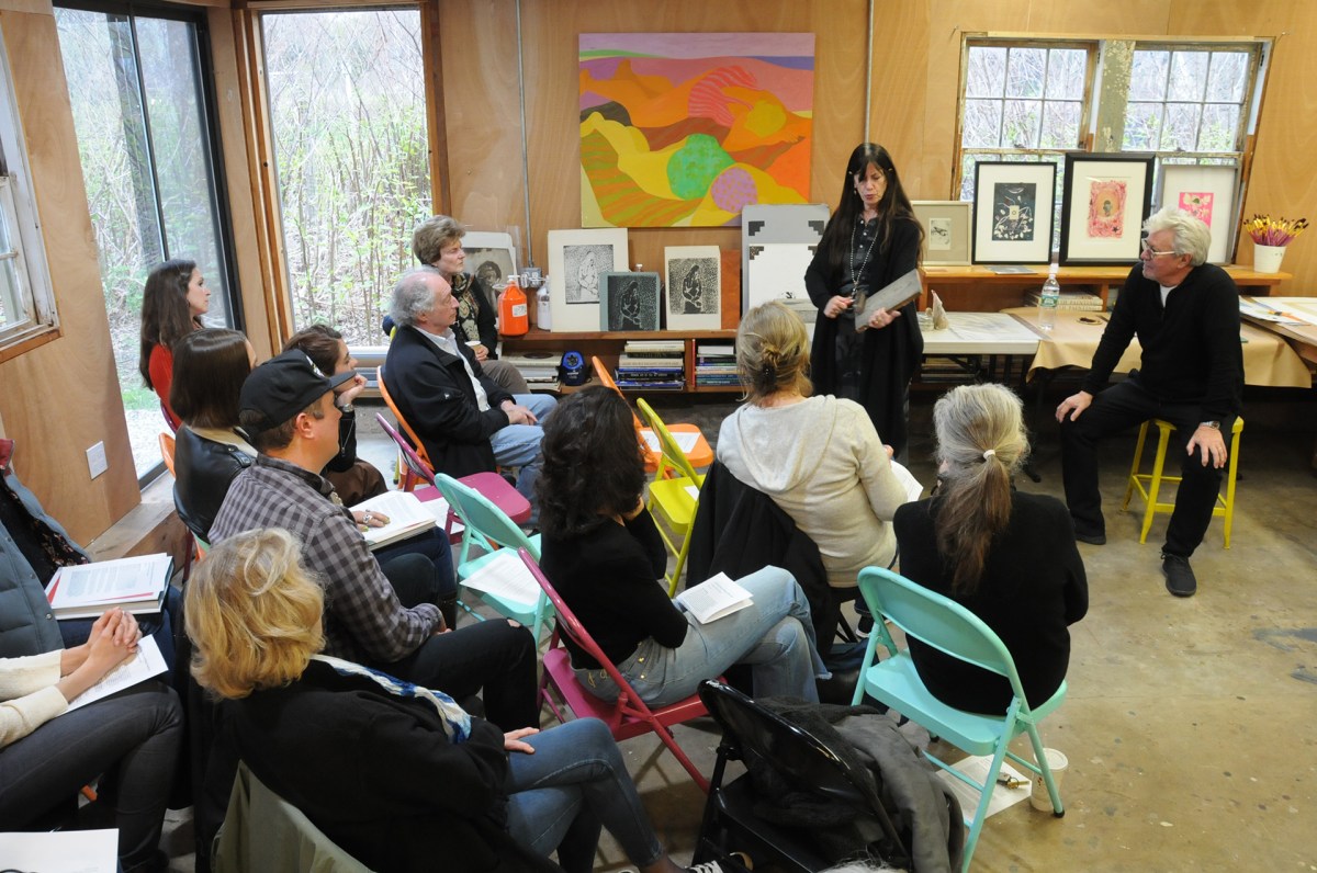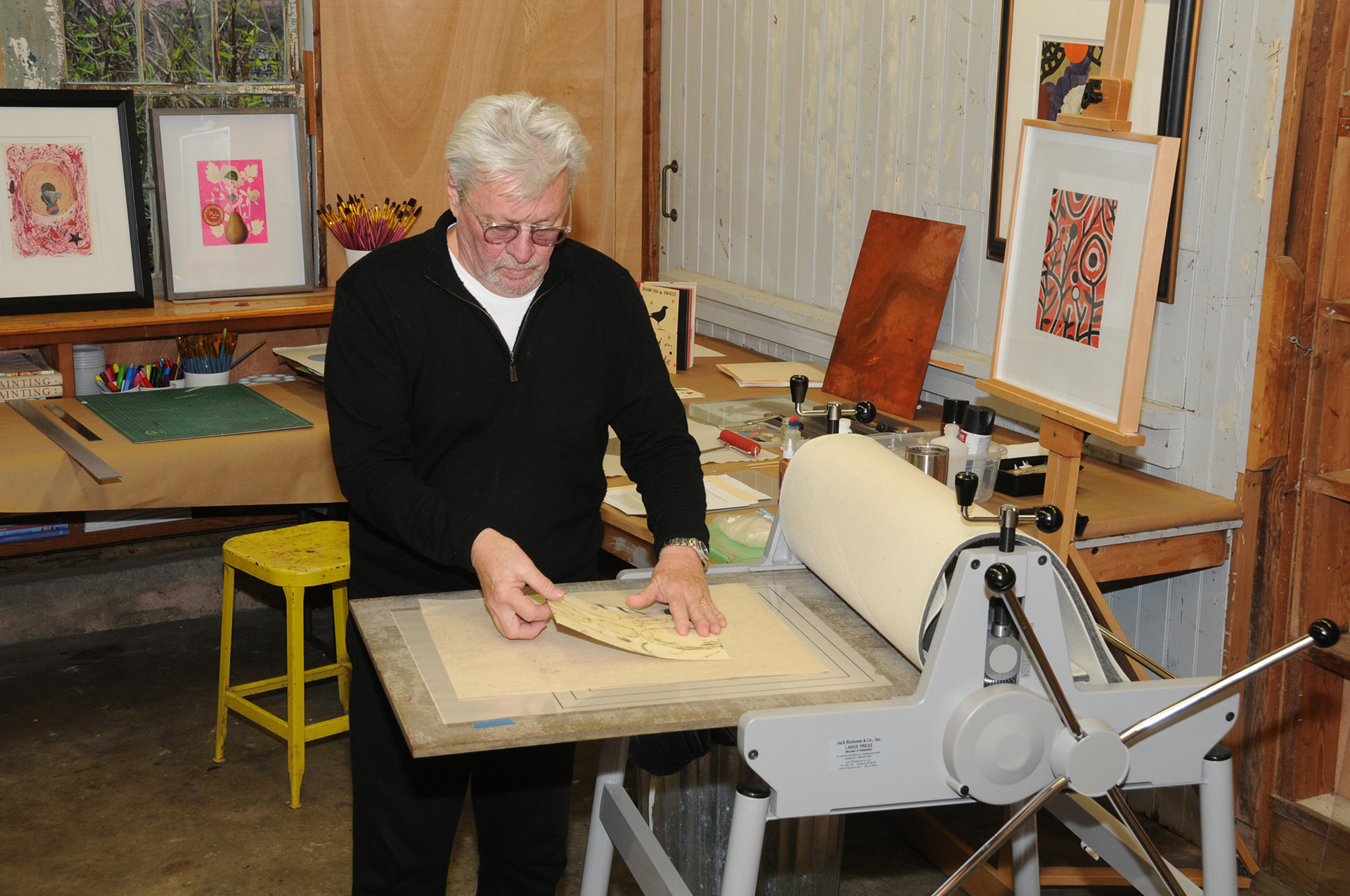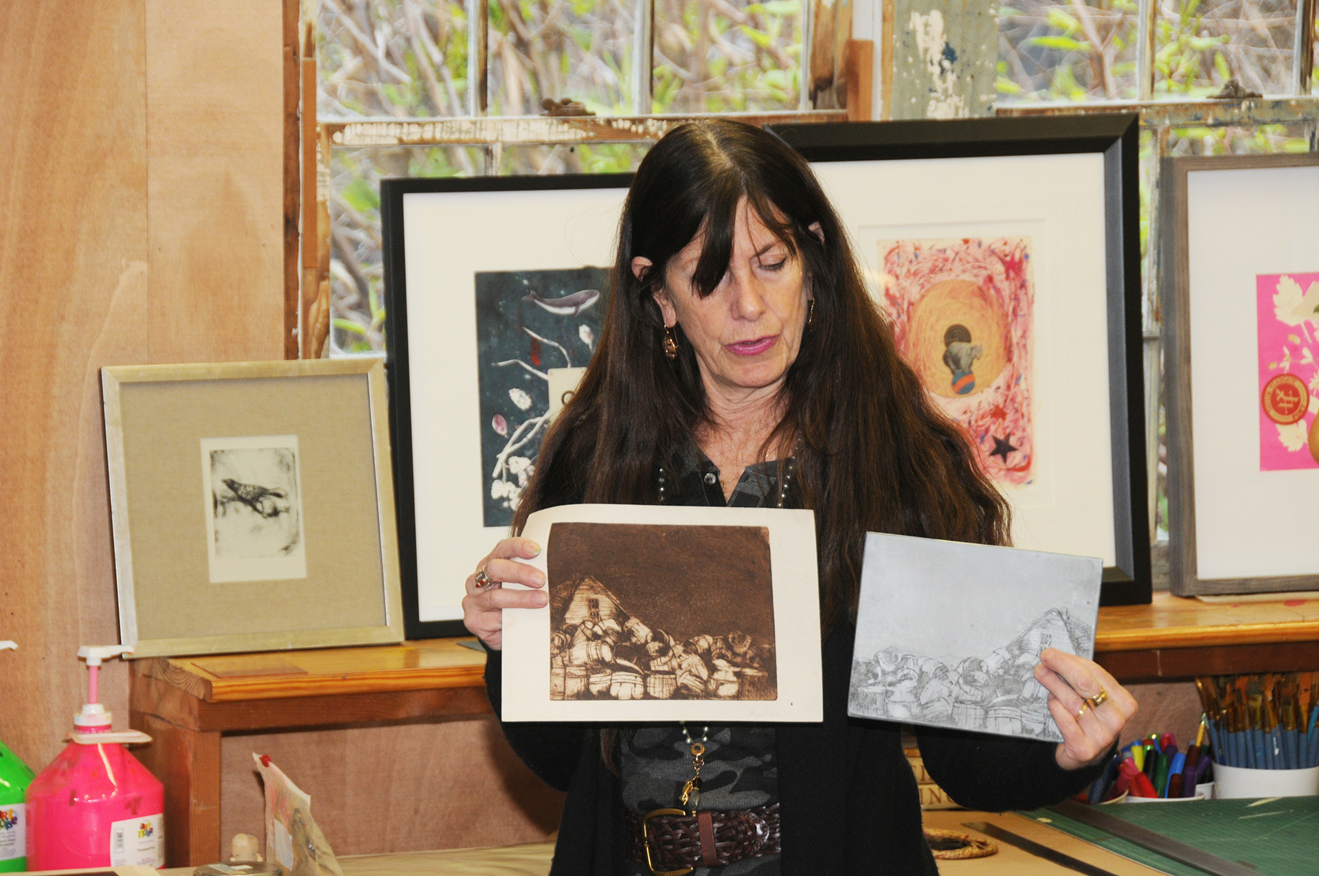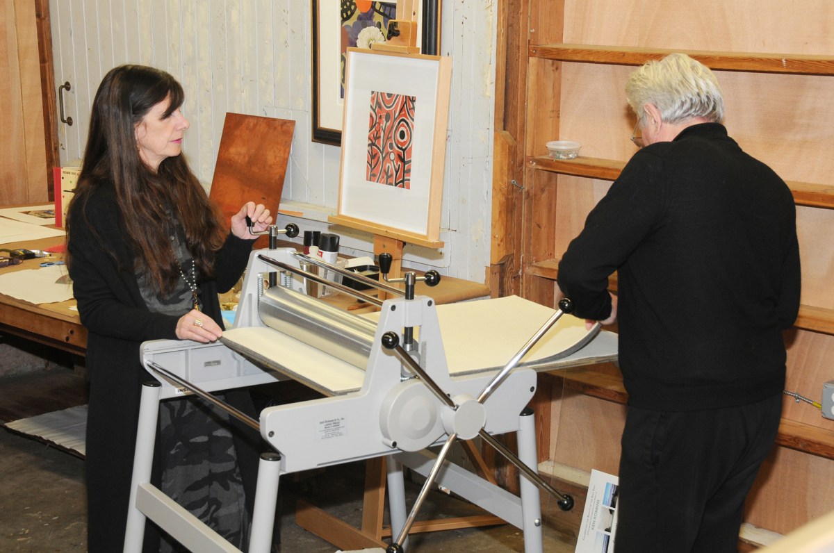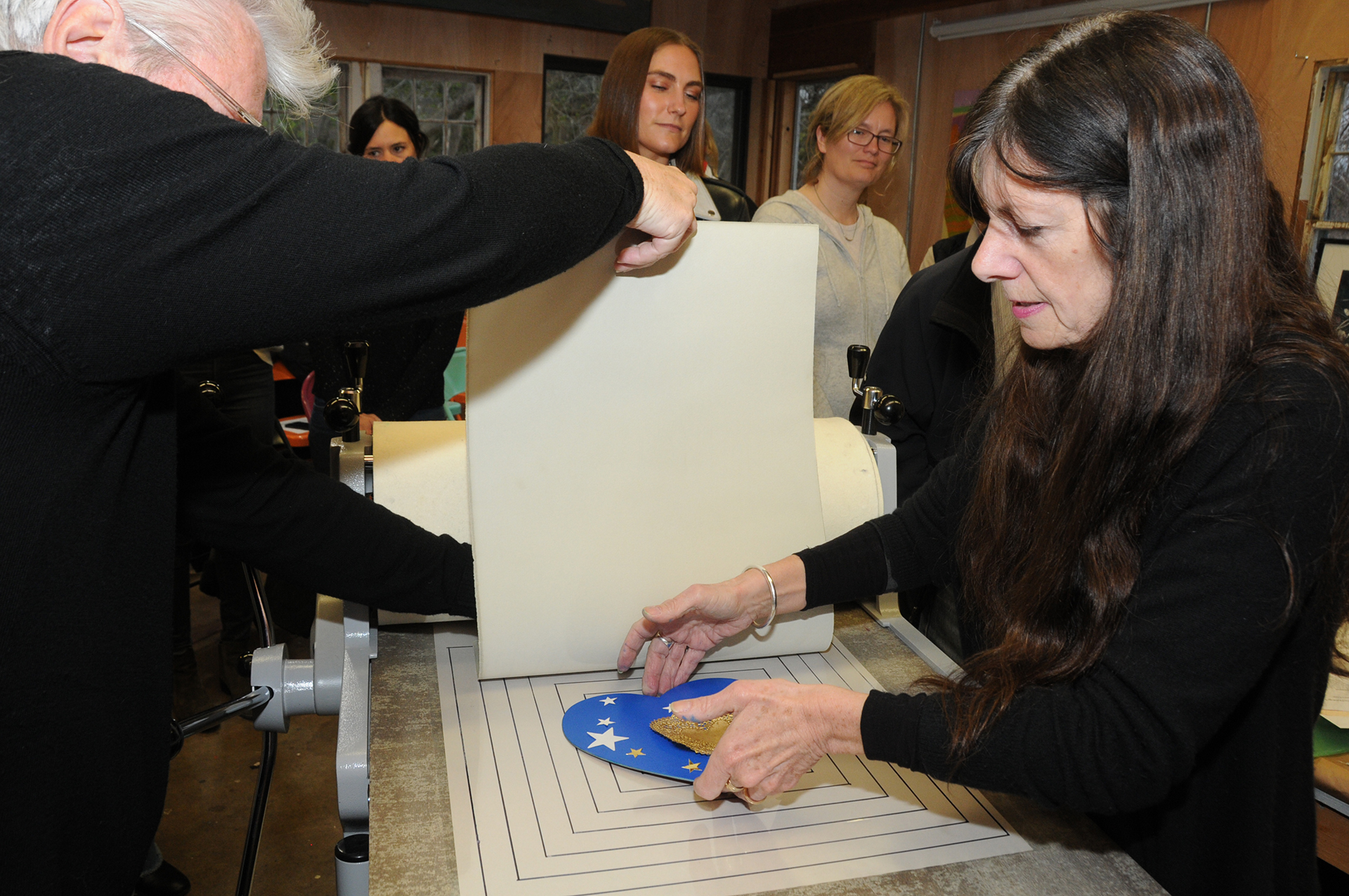 If you wanted to learn the difference between a mono-print and a monotype, and anything there is to know about printmaking, Golden Eagle in East Hampton was the place to be Wednesday, May 1, as artists Dan Rizzie and Susan Lazarus-Reiman explained and demonstrated a variety of techniques and materials. Dinner followed next door at Nick & Toni’s Restaurant, part of the “A Night Out With . . .” series.