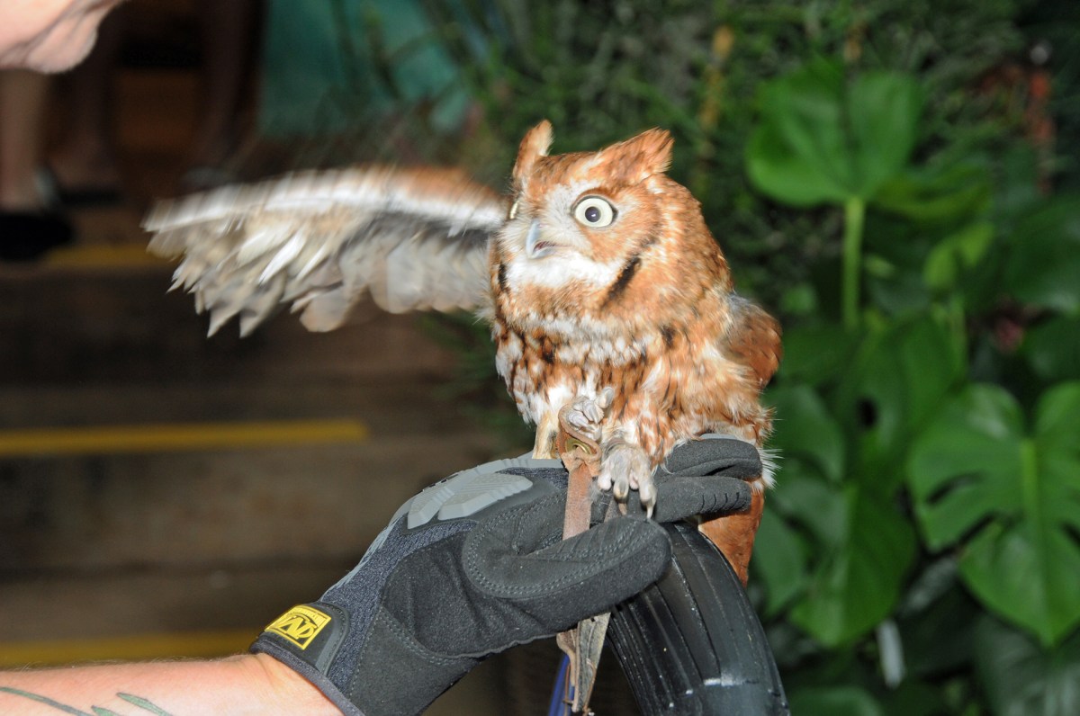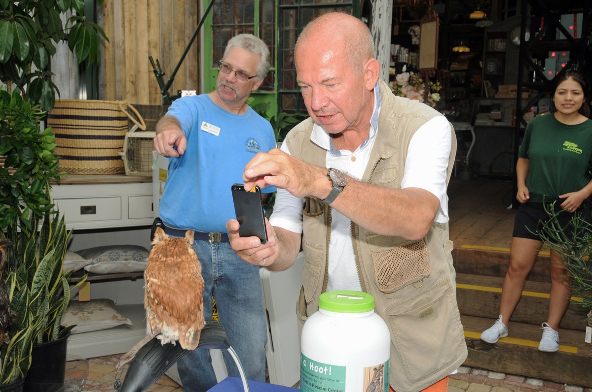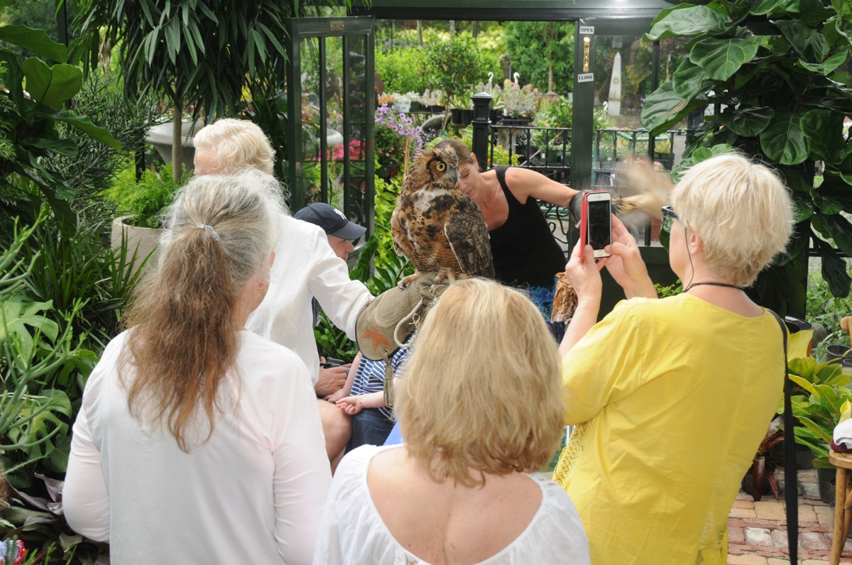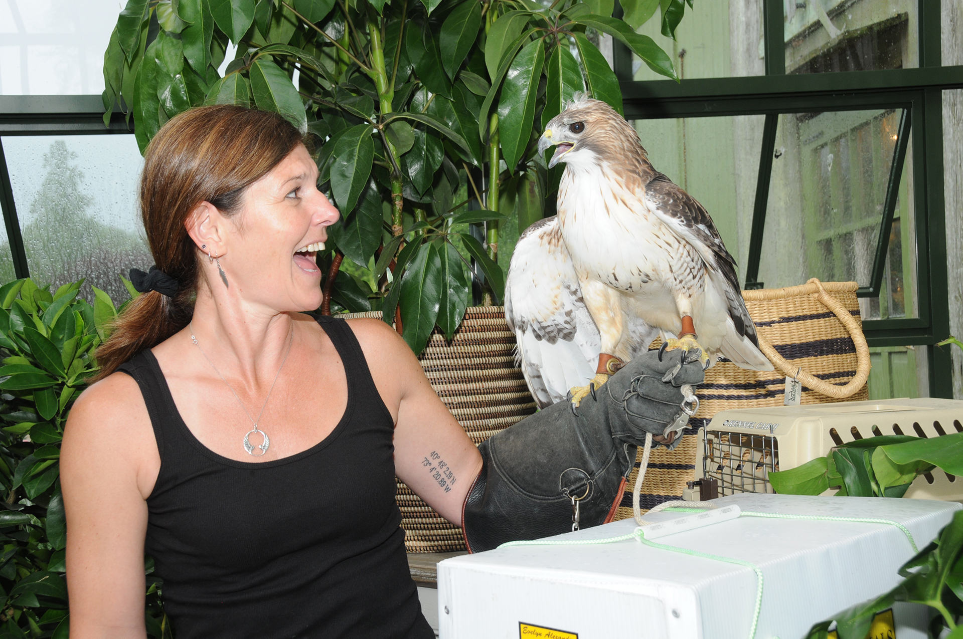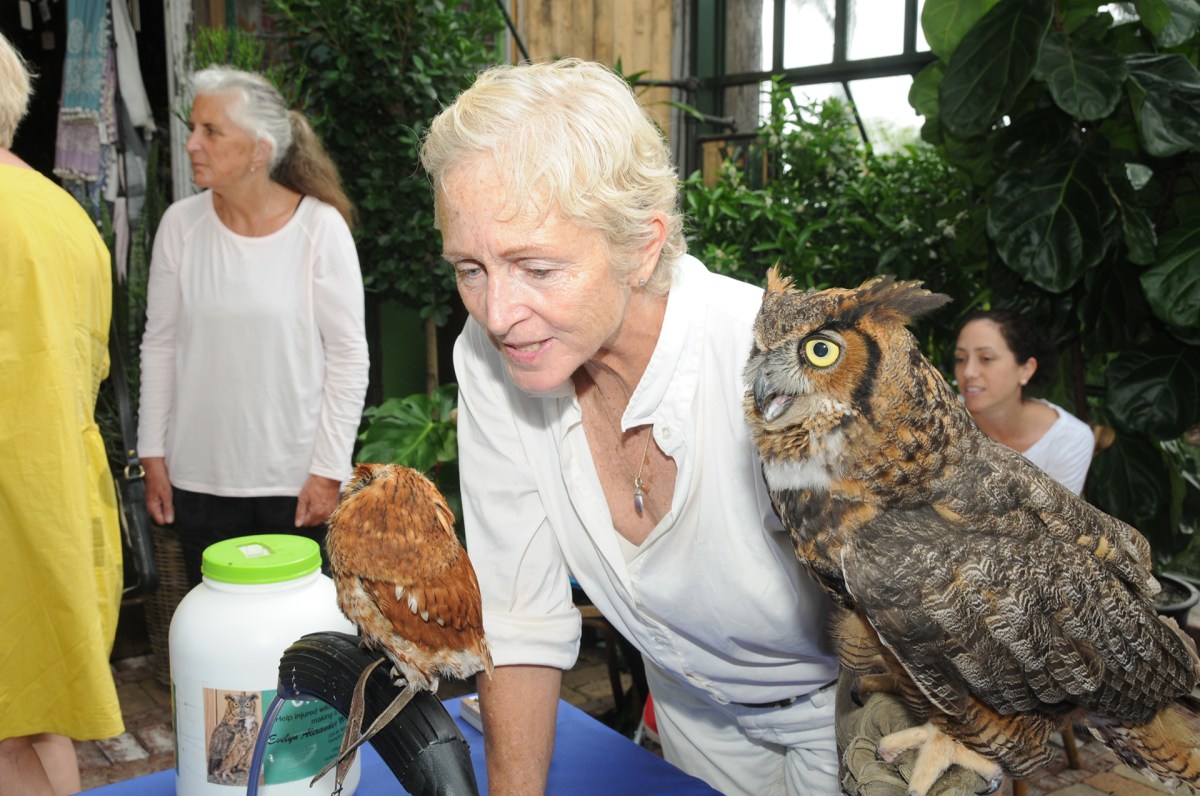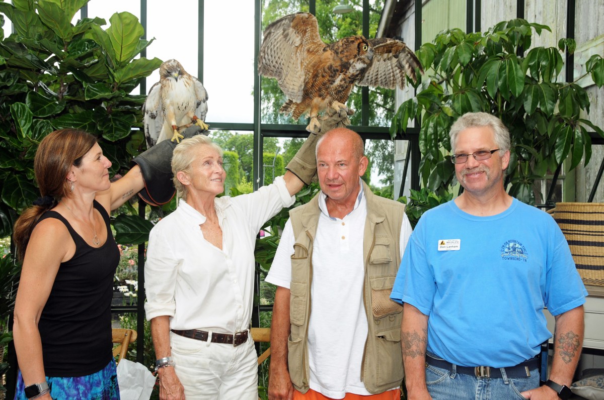 Visitors had a chance to meet Birds of Prey close up on Sunday, June 30, at Marders in Bridgehampton, as wildlife expert Jane Gill and crew brought a rescued owl and hawk from the Evelyn Alexander Rescue Center of East Quogue.