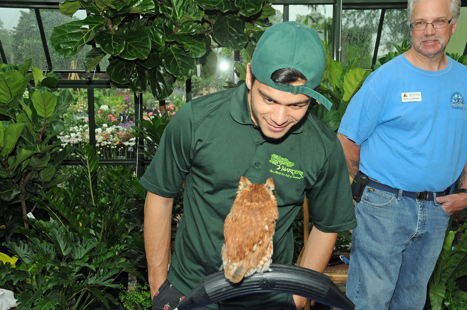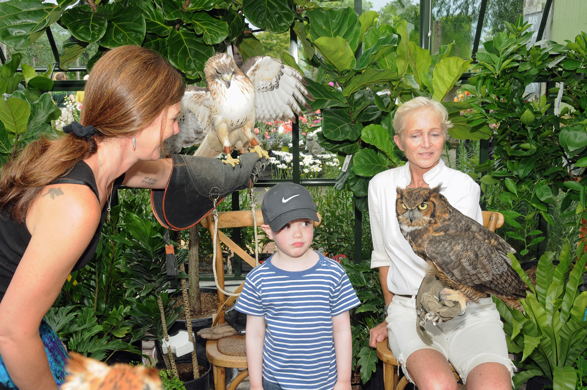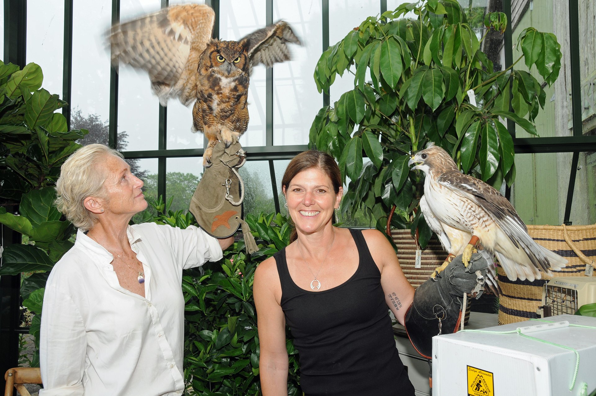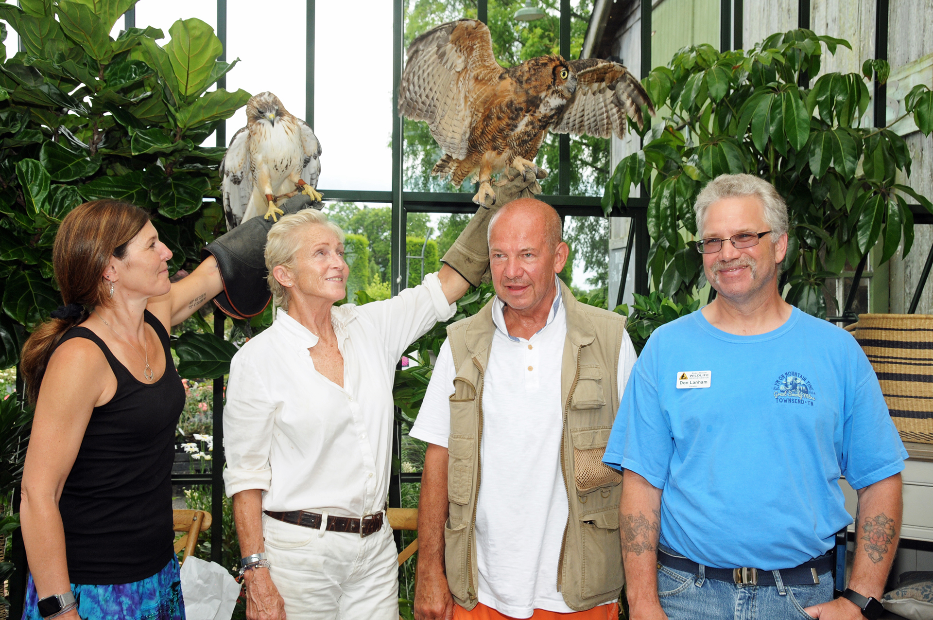 Visitors had a chance to meet Birds of Prey close up on Sunday, June 30, at Marders in Bridgehampton, as wildlife expert Jane Gill and crew brought a rescued owl and hawk from the Evelyn Alexander Rescue Center of East Quogue.