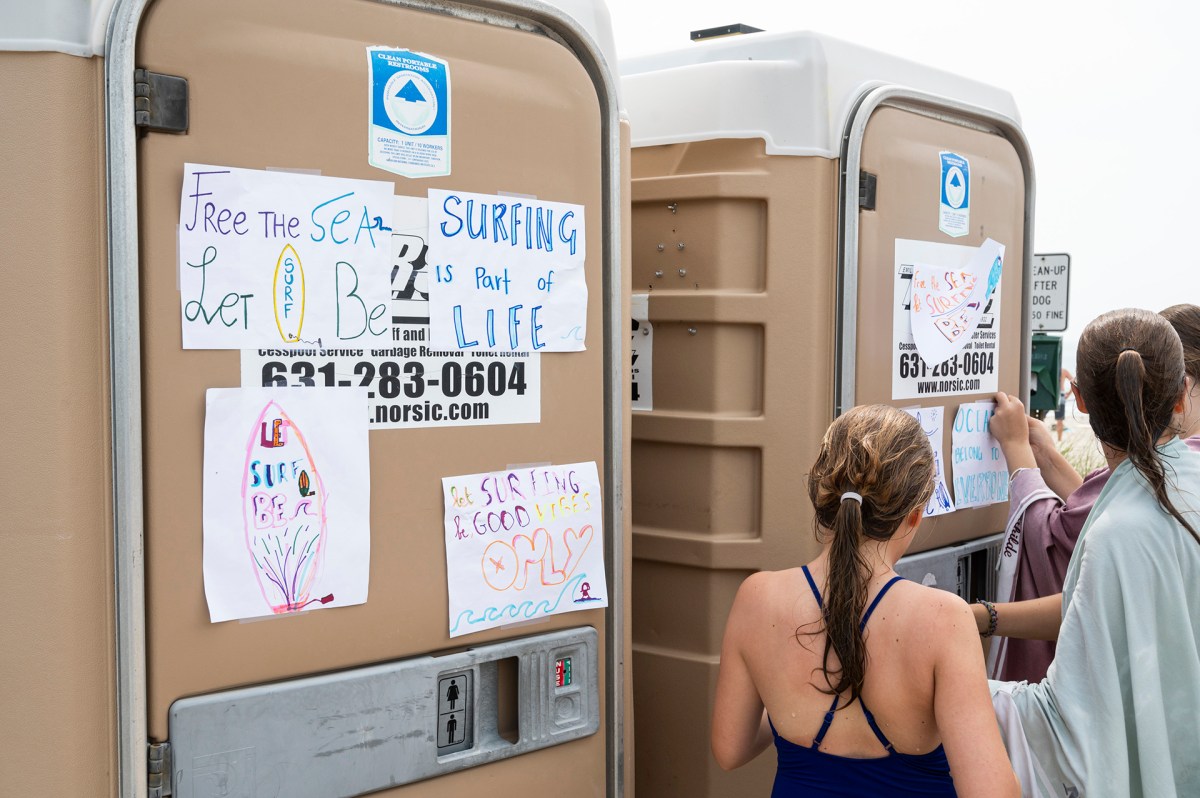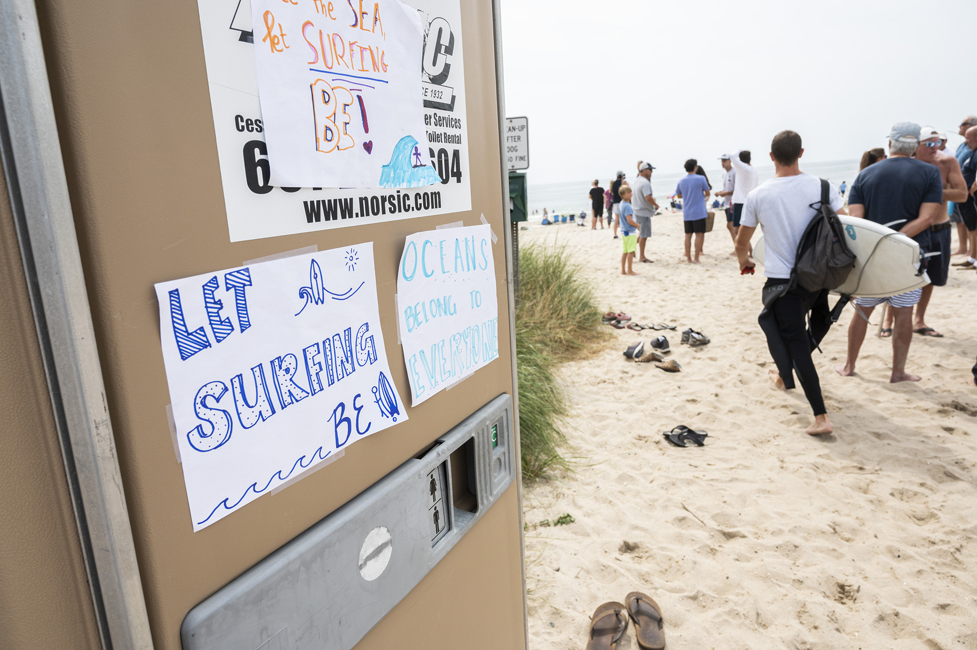 Chloe Kimball, the organizer of the August 18 protest who began a Change.org petition that received 5000 signatures by press time, said Southampton police were telling surfers to get out of the water Saturday, “telling us they were going to fine us $1000.”
