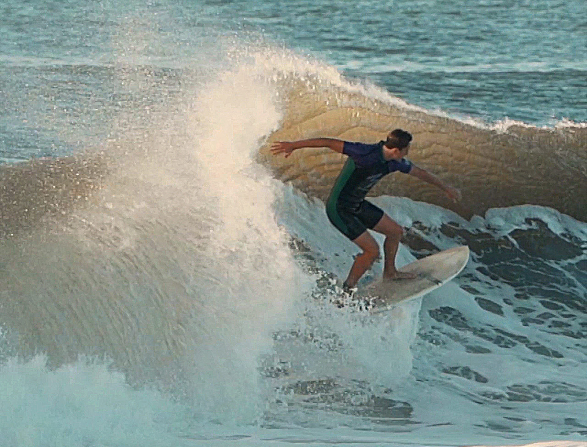 Steeper declines in the seafloor allow bigger waves to form. New York’s gradual decline in the seabed allows for some for big waves, but nothing like the swell formed in the Florida Keys or Caribbean islands, where the seafloor drops off rapidly. We should be grateful for our seven-footers as they come with fun and very little tragedy, comparatively speaking.