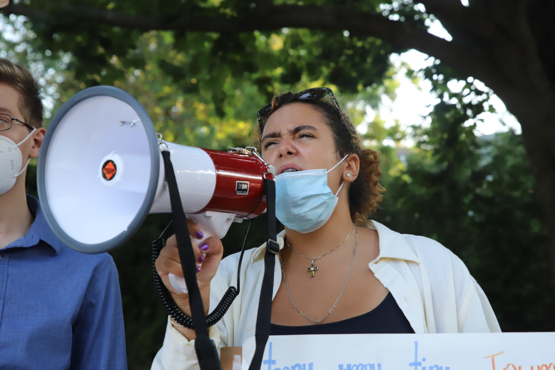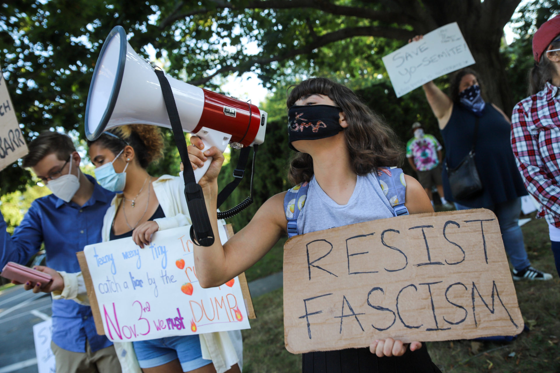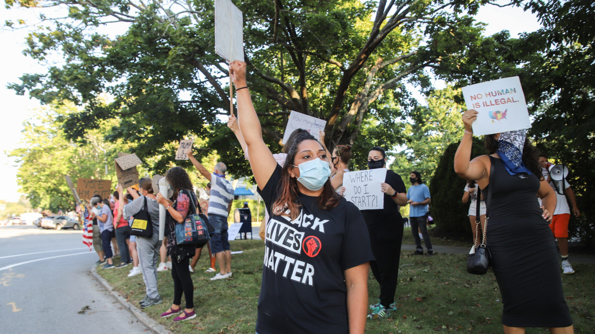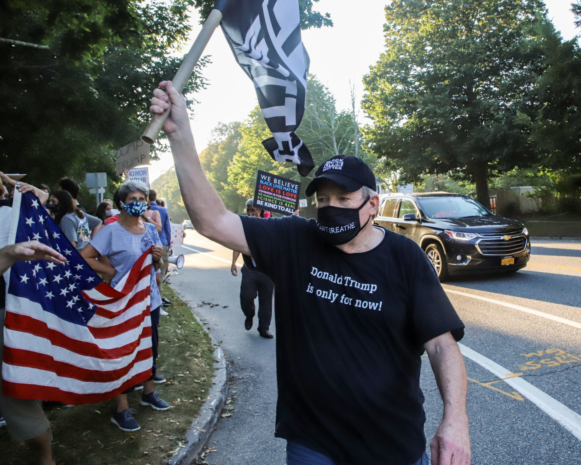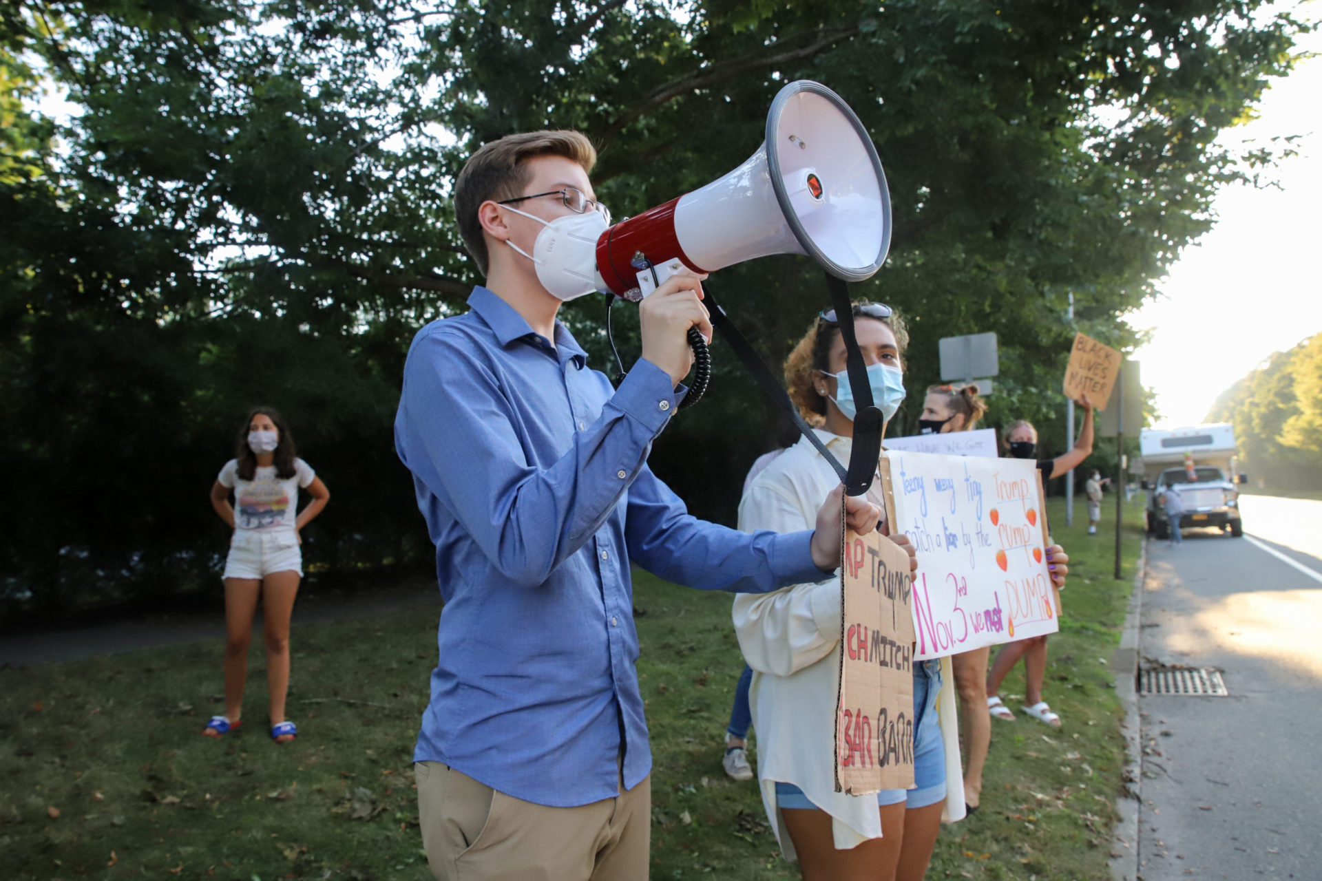 Vincent Vertuccio, a 17-year-old who serves as co-chair of Suffolk County for Biden, traveled from Sayville with a friend for the anti-Trump protest. “When I look at what the Trump administration does, every policy action, every policy move can either be characterized by gross incompetence or gross malevolence and that is not the way I should be able to describe our president. The hatred I see from him it really saddens me and it scares me because we have someone whose attacking critical rights like LGBT rights, attacking the Black Lives Matters movement and then we have someone who just has know idea what they’re doing,” he said.