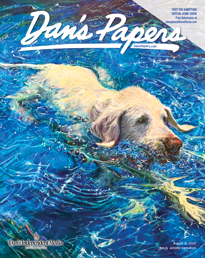 A beloved family pet inspired this piece titled, “Who’s A Good Girl?” The art was commissioned by one of my collectors. Roxy is a Labrador who recently passed, and she loved to swim. The client sent a variety of beautiful pictures to choose from. My specialty is water, so this image was an obvious choice. The collector is also a painter, so we enjoyed the painting process together.
