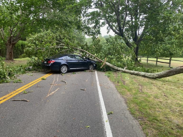 Police, highway and fire departments responded to dozens of calls, including non-working traffic lights, trees down onto roadways and other hazards caused by wind damage, Town Supervisor Jay Schneiderman said in a statement Tuesday night. There were some reports of downed lines that sparked some house fires, he added.