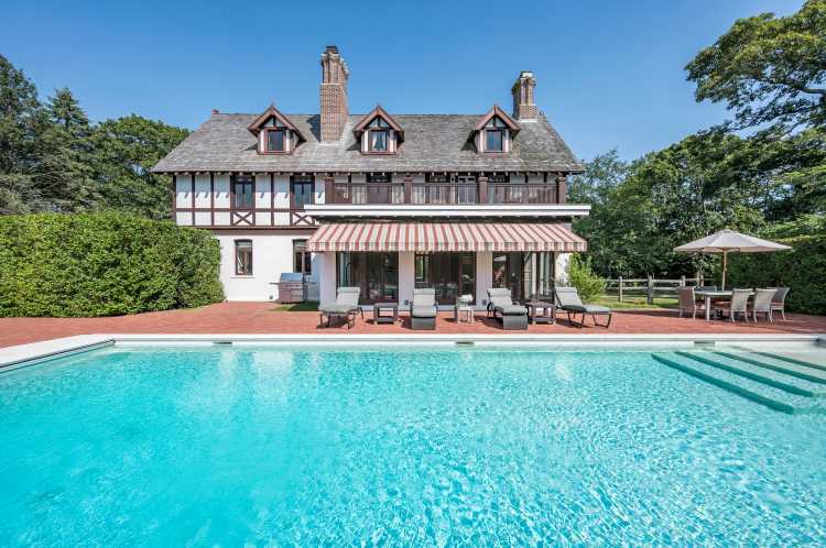 Sitting on 2.2 acres, the house is complemented by a new 20-by-50-foot heated gunite pool and a hot tub, surrounded by a classic brick patio.