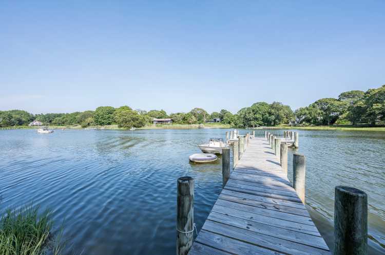 The deepwater dock on West Neck Creek offers enough room for multiple boats and easy access to the pristine Shelter Island waters.