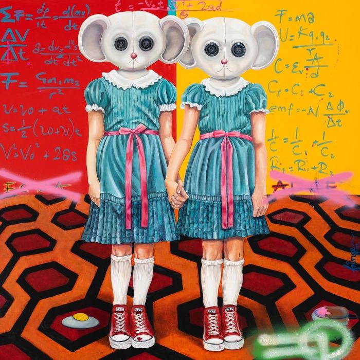 FRINGE does not enter the frame quietly; he arrives like a beautifully controlled disturbance. There is something seductive in the immediacy of the work, yet something far more destabilizing beneath it—a polished visual language carrying the residue of memory, pressure, ghosts, and private unrest. Born in South Africa in the late 1970s and shaped first by the architecture of the corporate world before fully turning toward fine art, he makes work that understands systems intimately enough to bend them. Pop iconography, brand fluency, psychological tension, and emotional aftershock all collide in a practice that feels at once culturally legible and deeply internal. The White Room Gallery, the first gallery to represent FRINGE in the US, places this psychological terrain within a broader contemporary dialogue through Wild Things, though the true subject remains the interior wilderness he continues to map in real time.