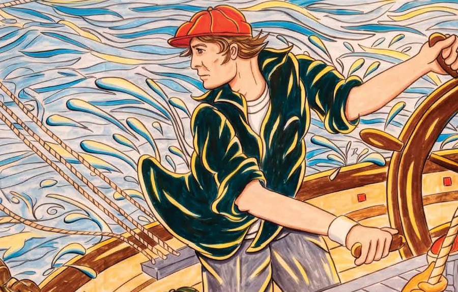 I have always been in awe of the majesty of the sea. Its power and beauty. In the drawing I want to show the struggle some people have dealing with the sea. Whether it’s fishermen, the Navy, Coast Guard or swimmers, they all confront the mighty sea. The sea is relentless and we must deal with it.